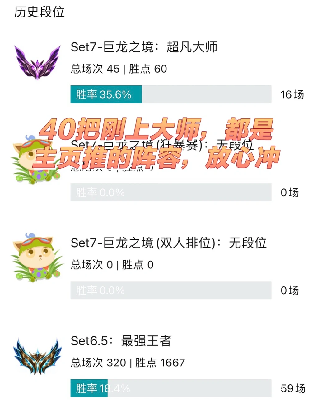 [暗中观察R]小猪目前40多把刚上大师,玩的都是最近推的,加上今天这套,大家放心使用,上大师够用了。