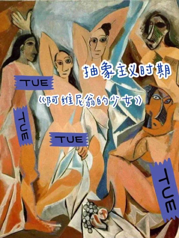 《阿维尼翁的少女》取材于毕加索经常光顾的地方,他摒弃了正常的透视和人体结构,将雕塑般锋利的人形挤压在狭小的空间里,给人最直白的视觉震动。