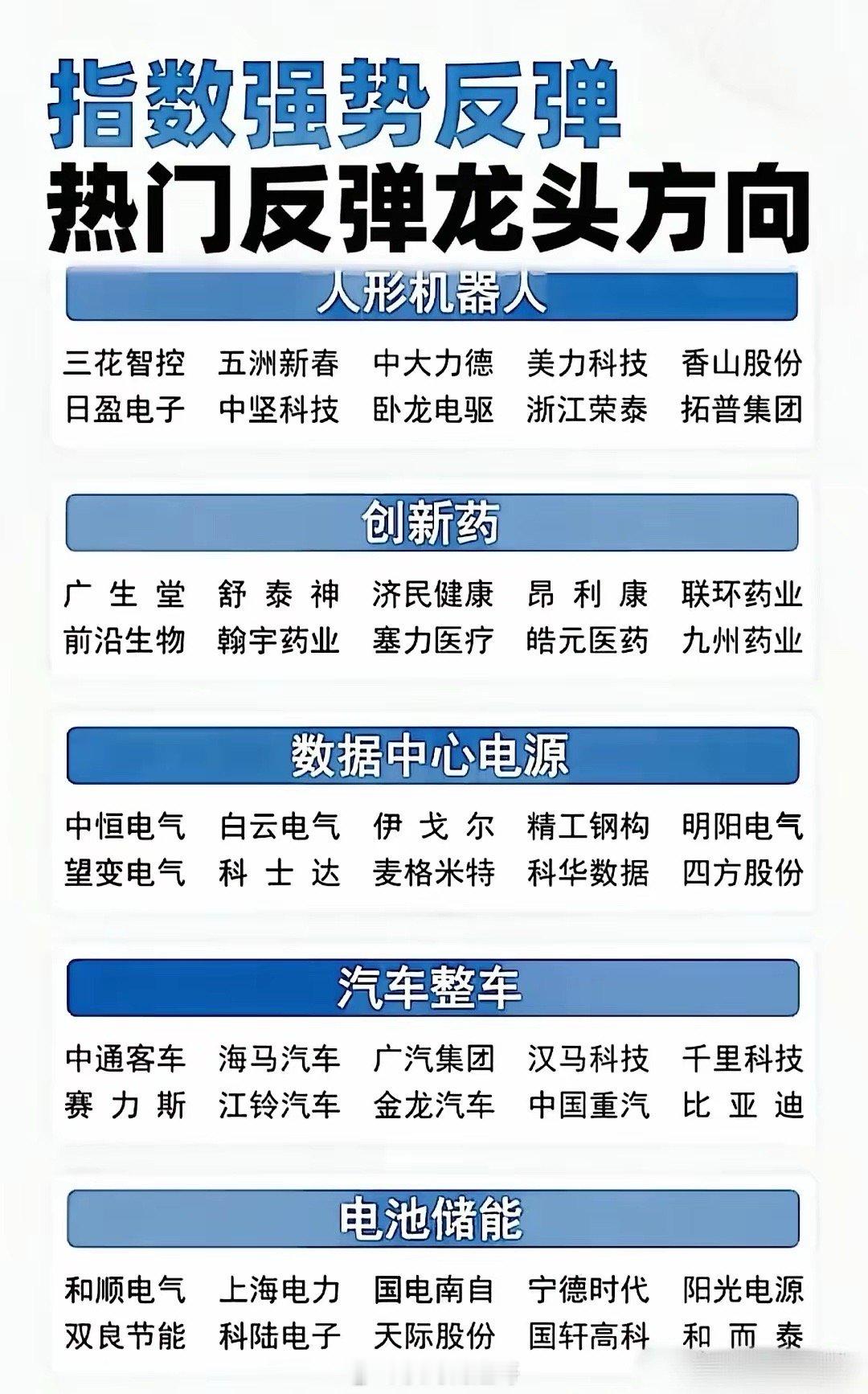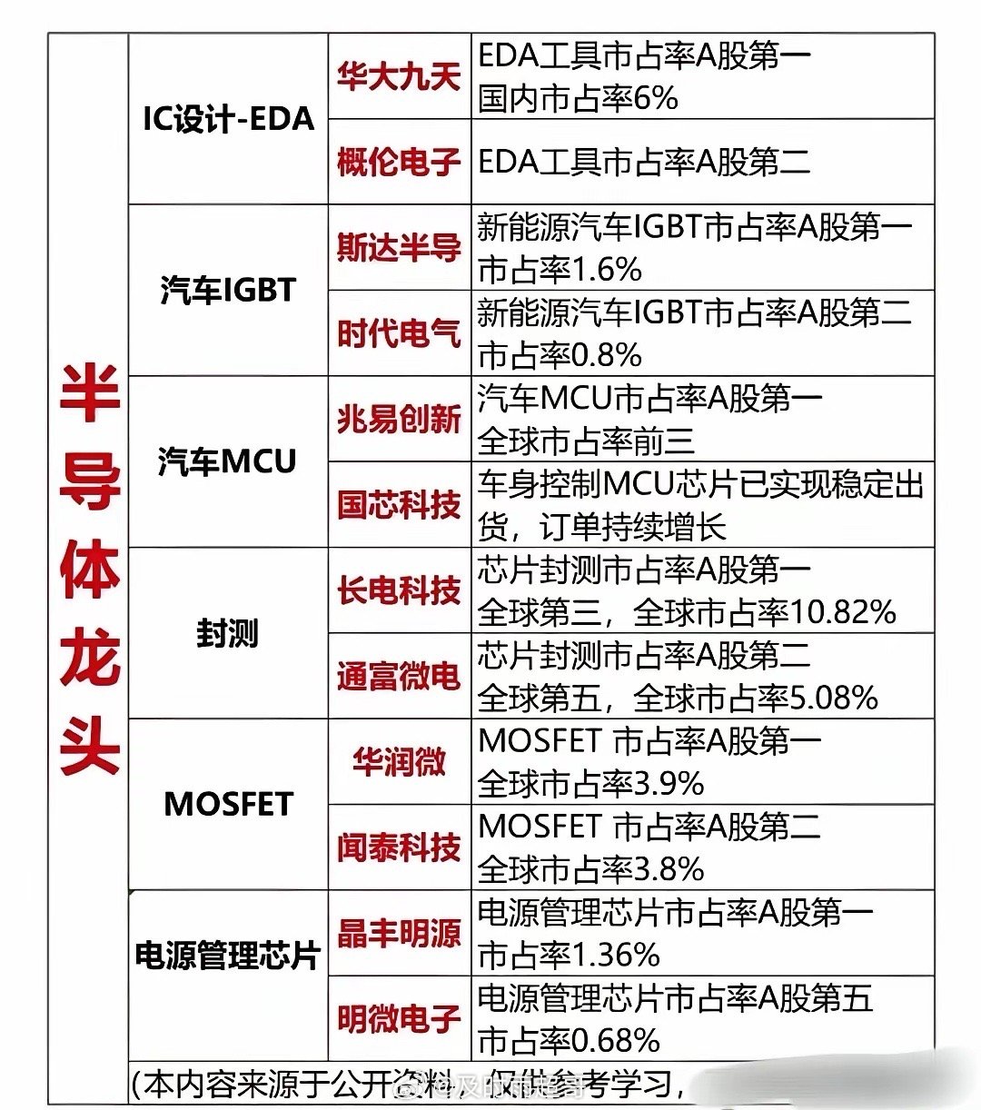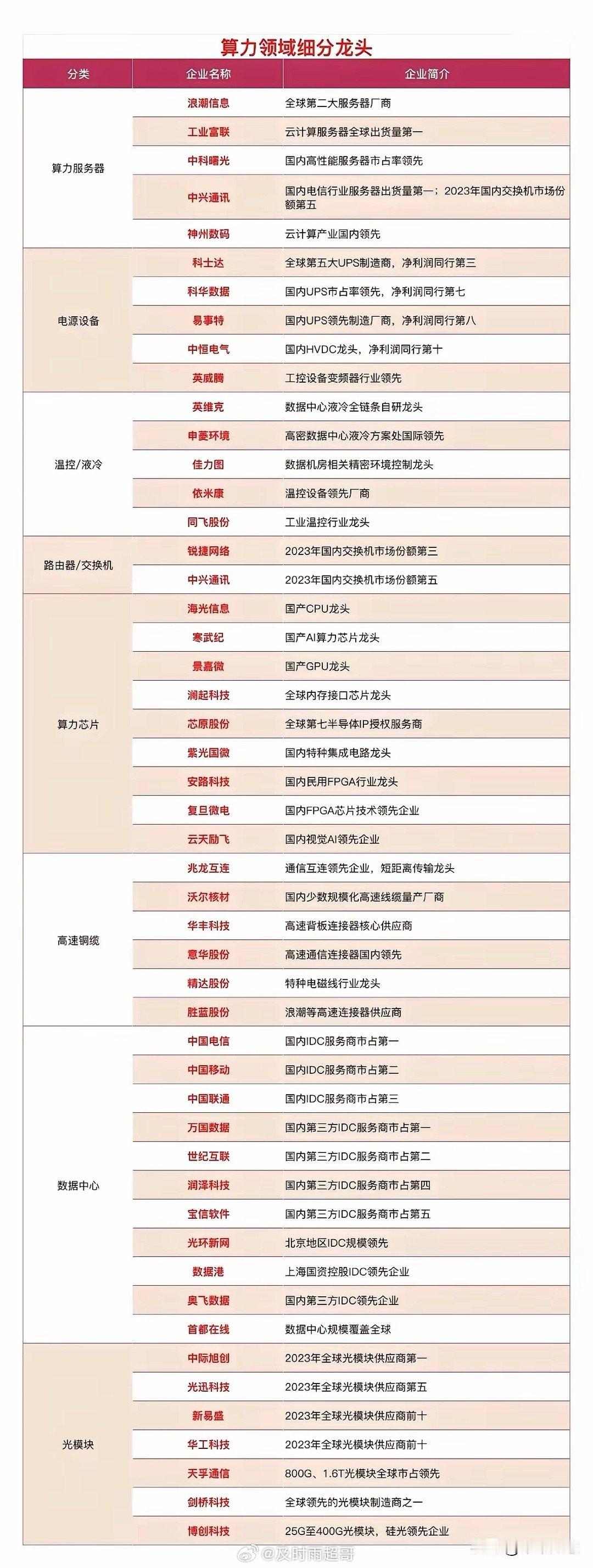 买股票就是买公司,价值投资本应如此!买公司是选择公司未来折现的能力,各龙头股稳定的折现能力是很好的选择:1、北方稀土:稀土永磁龙头2、中际旭创:光模块龙头3、药明康德:医药龙头4、先导智能:固态电池龙头5、工业富联:苹果手机代工龙头6、卧龙电驱:机器人龙头7、中芯国际:国产芯片晶圆代工龙头8、动力电池:宁德时代9、寒武纪:AI算力龙头10、中国平安:保险公司龙头11、科大讯飞:智能语音龙头12、中兴通讯:5G/6G通信龙头13、海光信息:高端处理器龙头14、整车制造:比亚迪15、兆易创新:存储芯片龙头16、工商银行:银行龙头17、东方财富:证券公司龙头18、中国移动:通信企业龙头19、长城军工:国防军工龙头20、中国卫星:航天科技龙头21、紫金矿业:贵金属产储量龙头22、浪潮信息:AI服务器算力龙头23、胜宏科技:特斯拉服务商24、立讯精密:消费电子制造龙头25、阳光电源:绿色储能龙头26、中国电影:影视制作龙头27、中国船舶:船舶制造龙头28、美的集团:家电龙头29、亿纬锂能:光伏储能龙头30、广生堂:创新药龙头31、长江电力:电力龙头32、中国核建:可控核聚变龙头