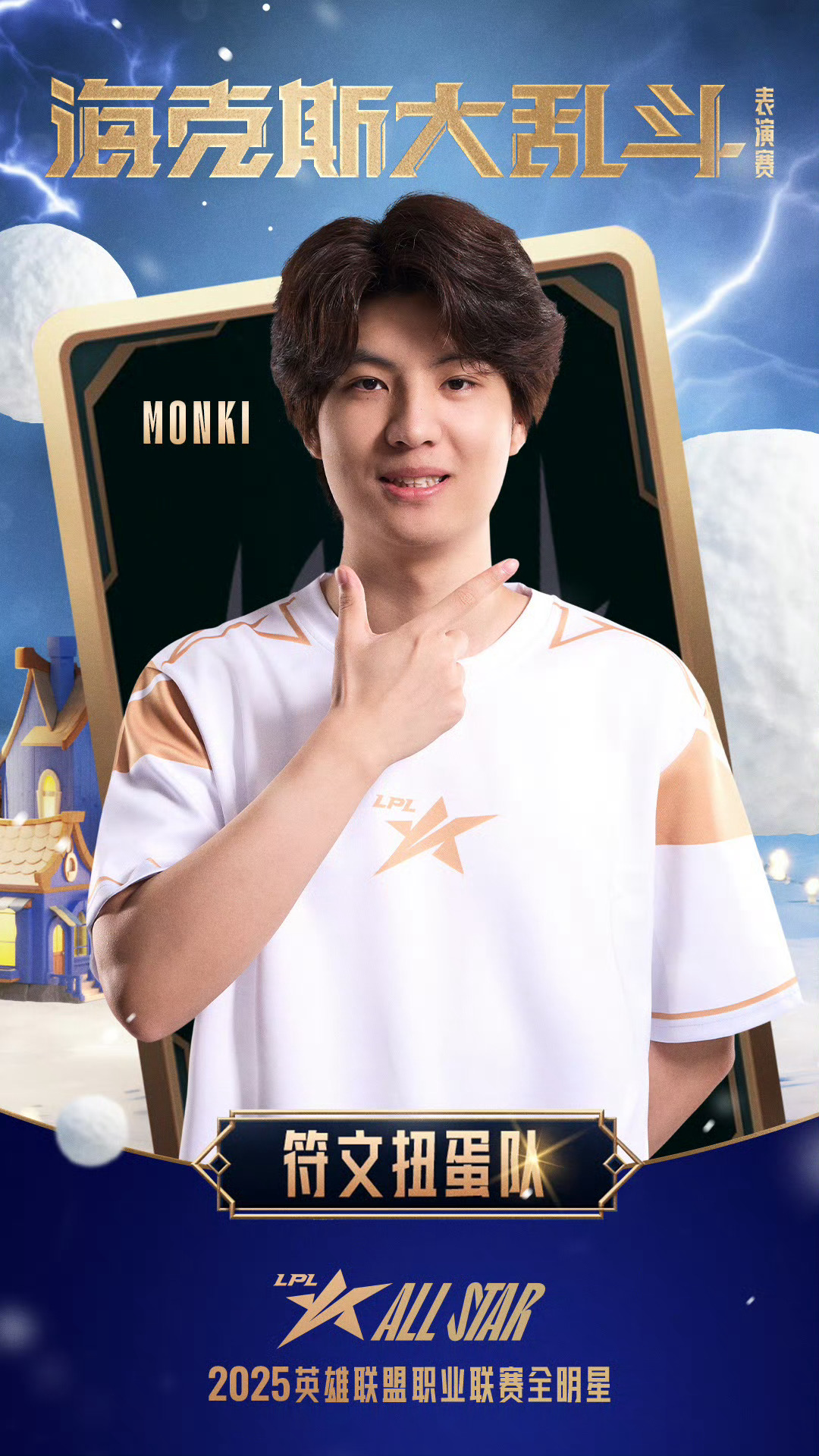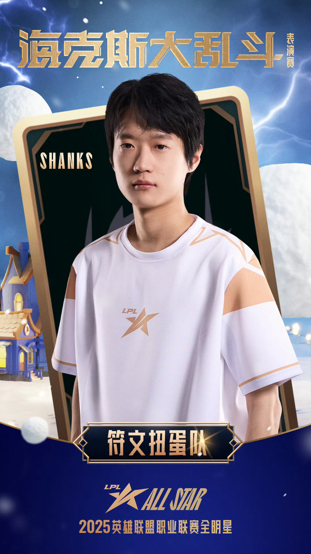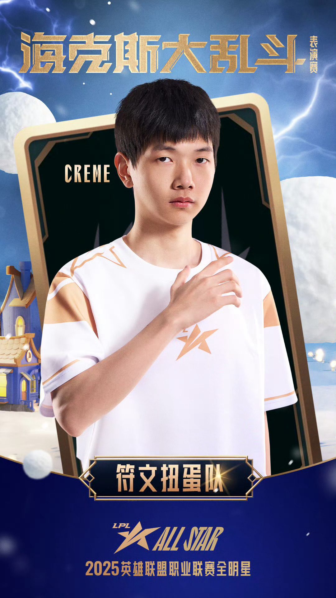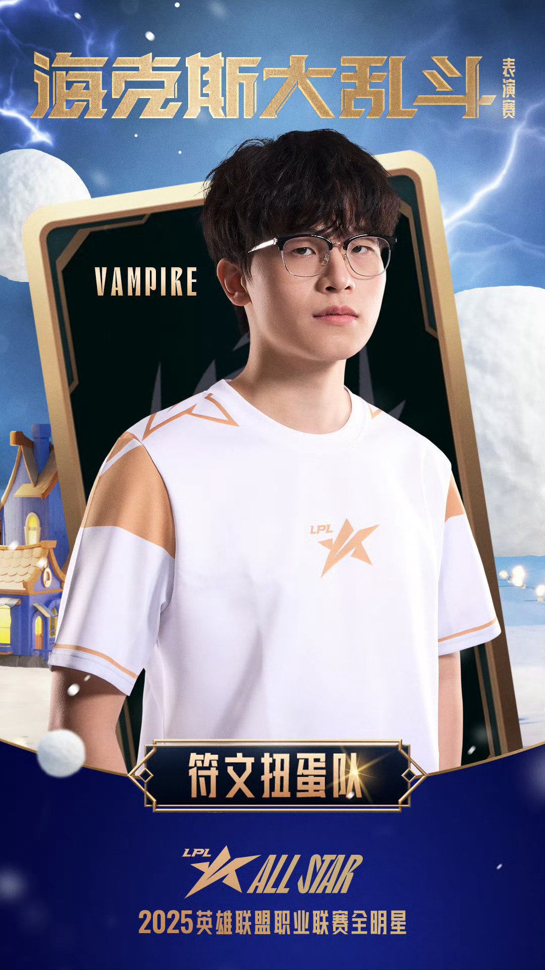 2025LPL全明星符文扭蛋队海报2025LPL全明星海克斯大乱斗2025LPL全明星海克斯大乱斗:符文扭蛋队选手、、、、集结完毕!海克斯趣乱斗,见奇幻变化,享团聚时光,海克斯大乱斗表演赛12月6日约18:30即将开启,让我们相约冰雪节!2025LPL全明星竞浪大会