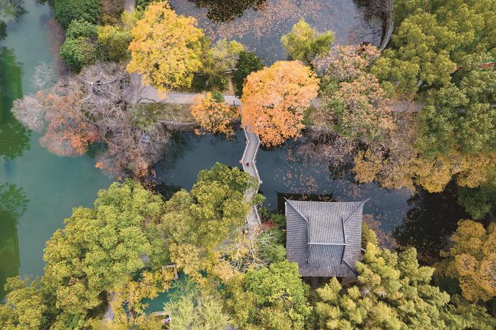 昨天,秀洲区新塍镇小蓬莱公园宛如打翻的调色盘,铺展一幅多彩的冬日画卷,尽显江南园林的韵味。