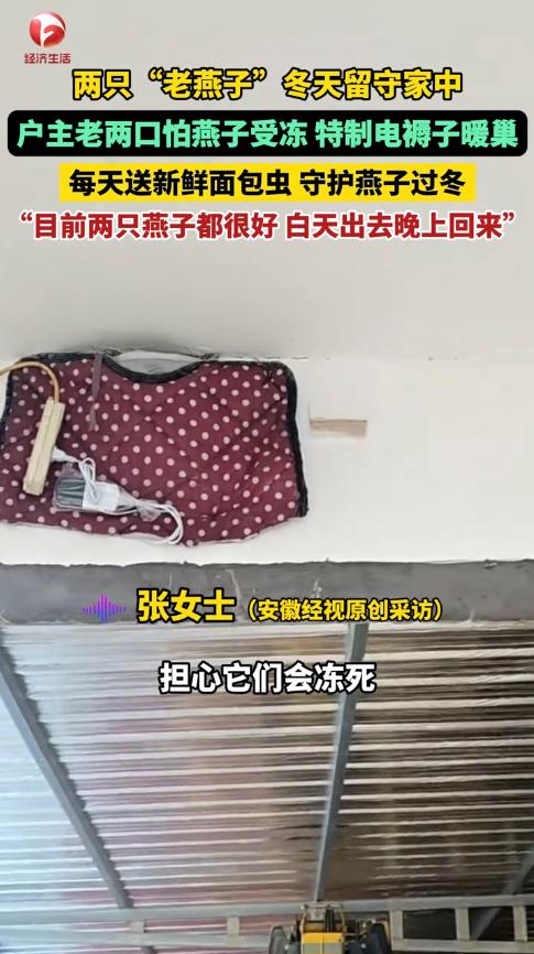 “万物皆有灵!”河北保定,一修理厂秋天时飞来许多燕子,随着天气逐渐变冷,燕子们都飞走了,只留下2只,老板觉得这2只燕子太老了,飞不动了,可放它们在这里一定会被冻死,于是就买来电热毯和面包虫。网友:燕子也是挑人家的! 大多数鸟都是具有迁徙性的,天气冷了就会转移至温暖的南方地区,等到来年春天再飞回来,然而,迁徙路上困难重重,对于年龄较大的鸟来说,很可能会死在路上。 据媒体12月4日的报道,张女士家在河北开了家修车店,由于店里面空间大,每年秋天都有燕子会停留一段时间,今年自然也不例外。 而最令张女士印象深刻的,是其中一对燕子,今年已经是它们第8次飞来了,而且在其他燕子都飞走时,唯独这对燕子留了下来,似乎不打算走了! 张女士的父亲猜测可能是它们已经老了,没有体力穿越那么远的地方了,所以只能留下来。可是就这么放着不管,它们也会被冻死,于是老张就去给燕子买了电热毯和食物,确保它们能够熬过冬天。 张女士几乎每天都会来看看燕子的情况,它们白天也会飞出去,等到晚上才回来。 网友看后表示,燕子这种鸟非常有灵性,它来到你家筑巢,说明你们家非常安定,相信好人一定会有好报的! 信息来源:《12月4日(受访),河北保定,
