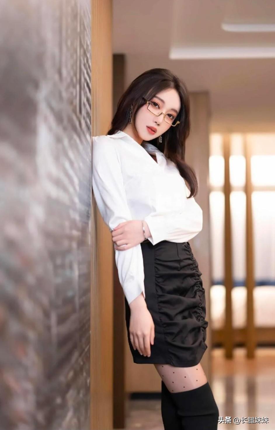 优雅白领风,长靴丝袜与白衬衫的完美搭配,尽显时尚与自信!👠💄