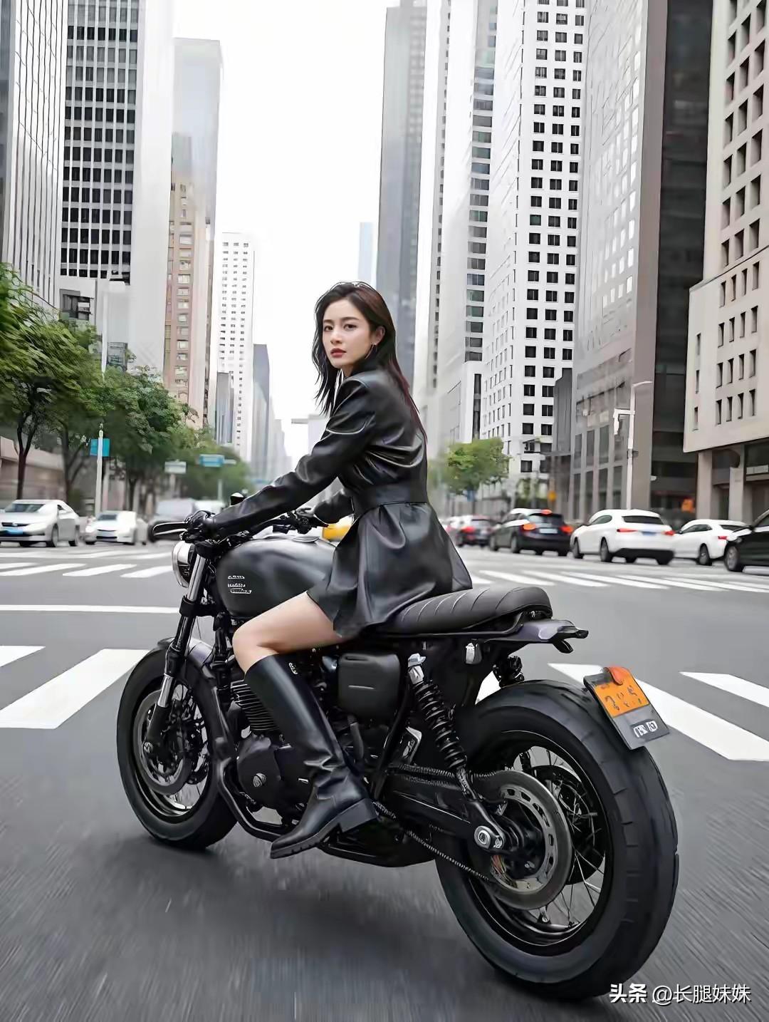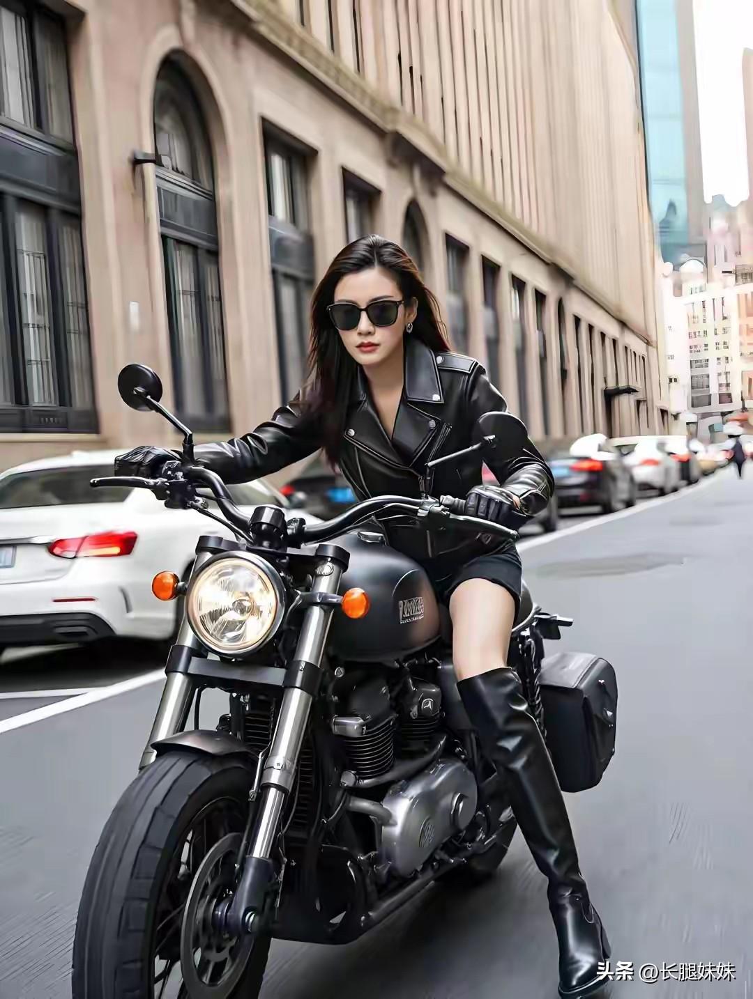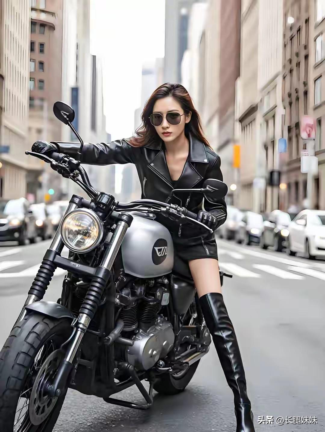 皮衣长靴机车美女,太酷啦