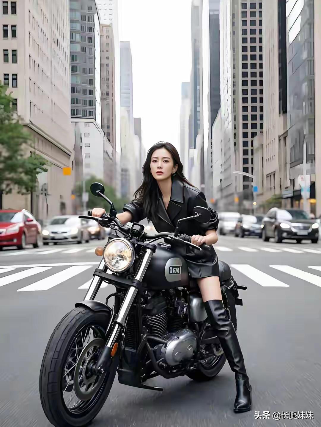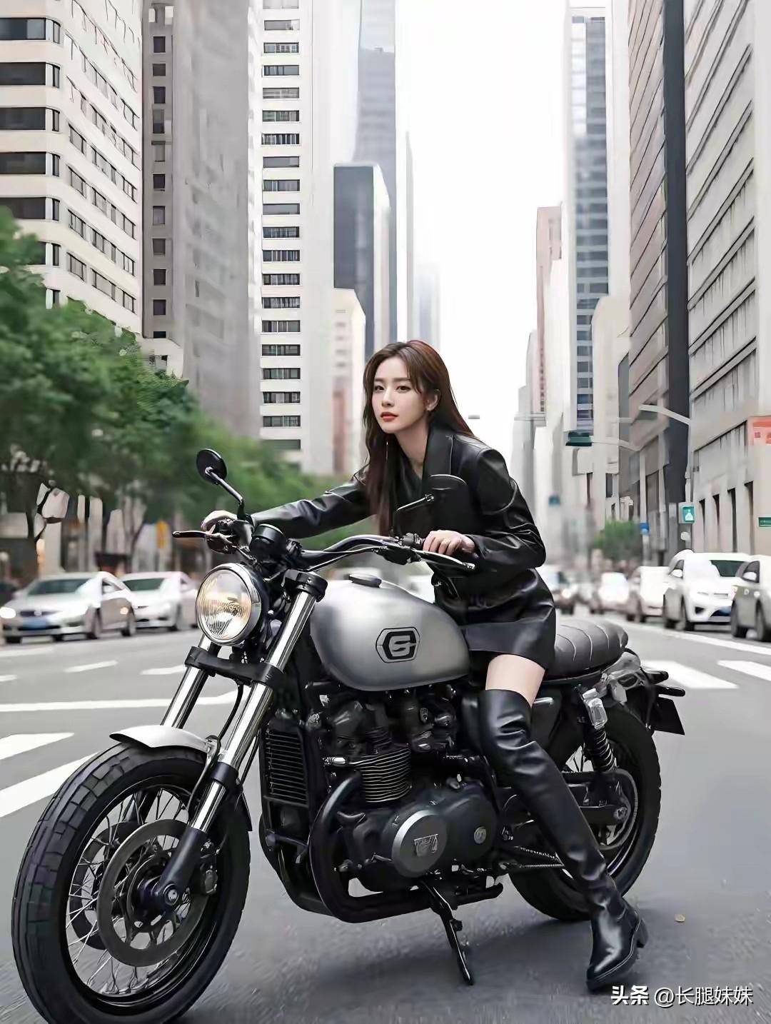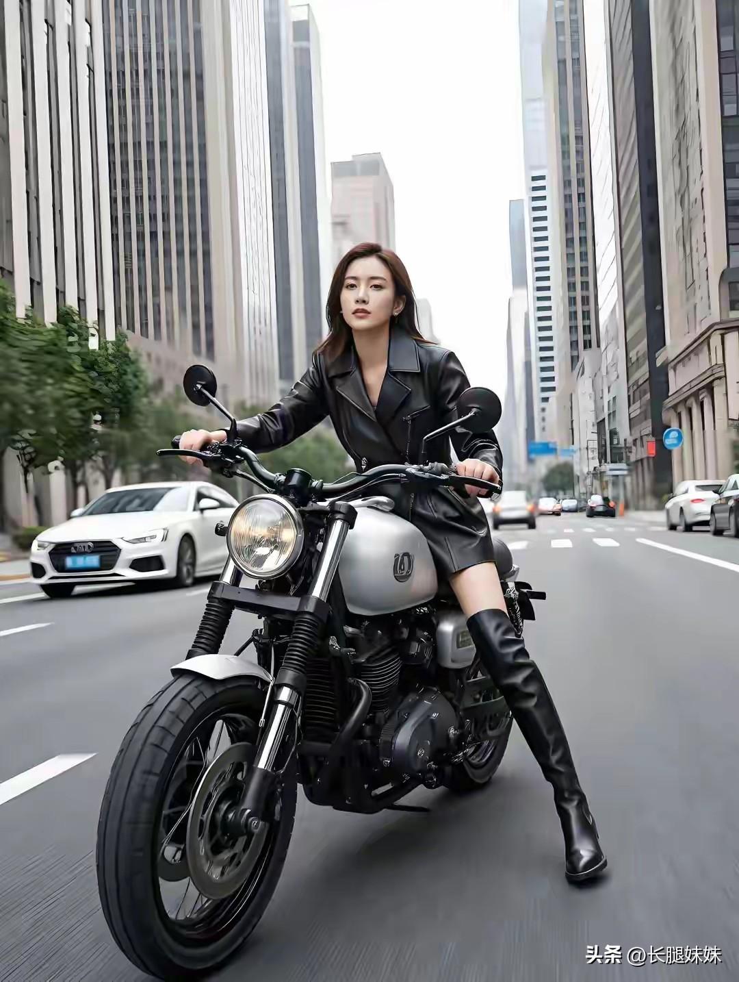 皮衣长靴机车美女,太酷啦