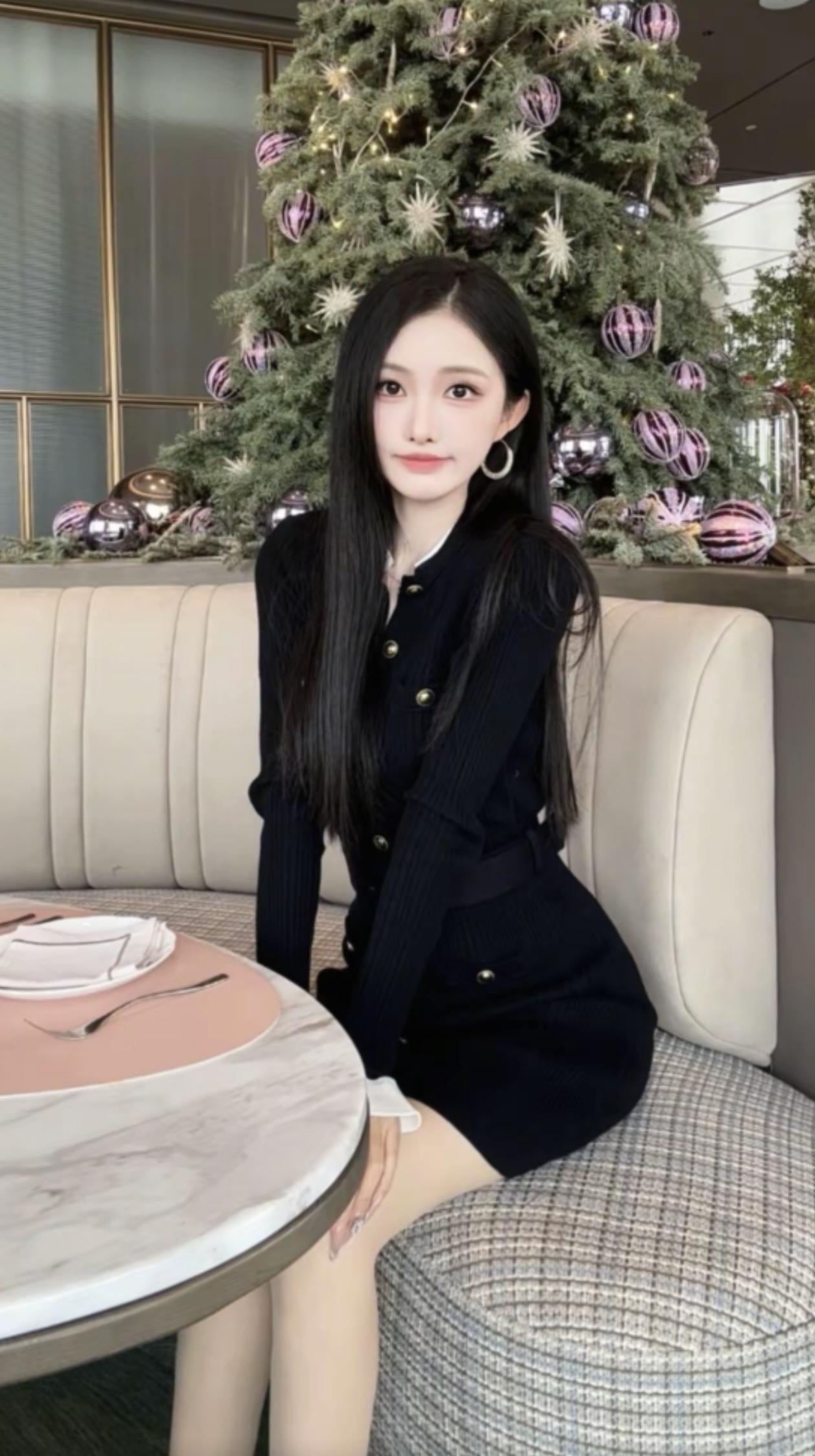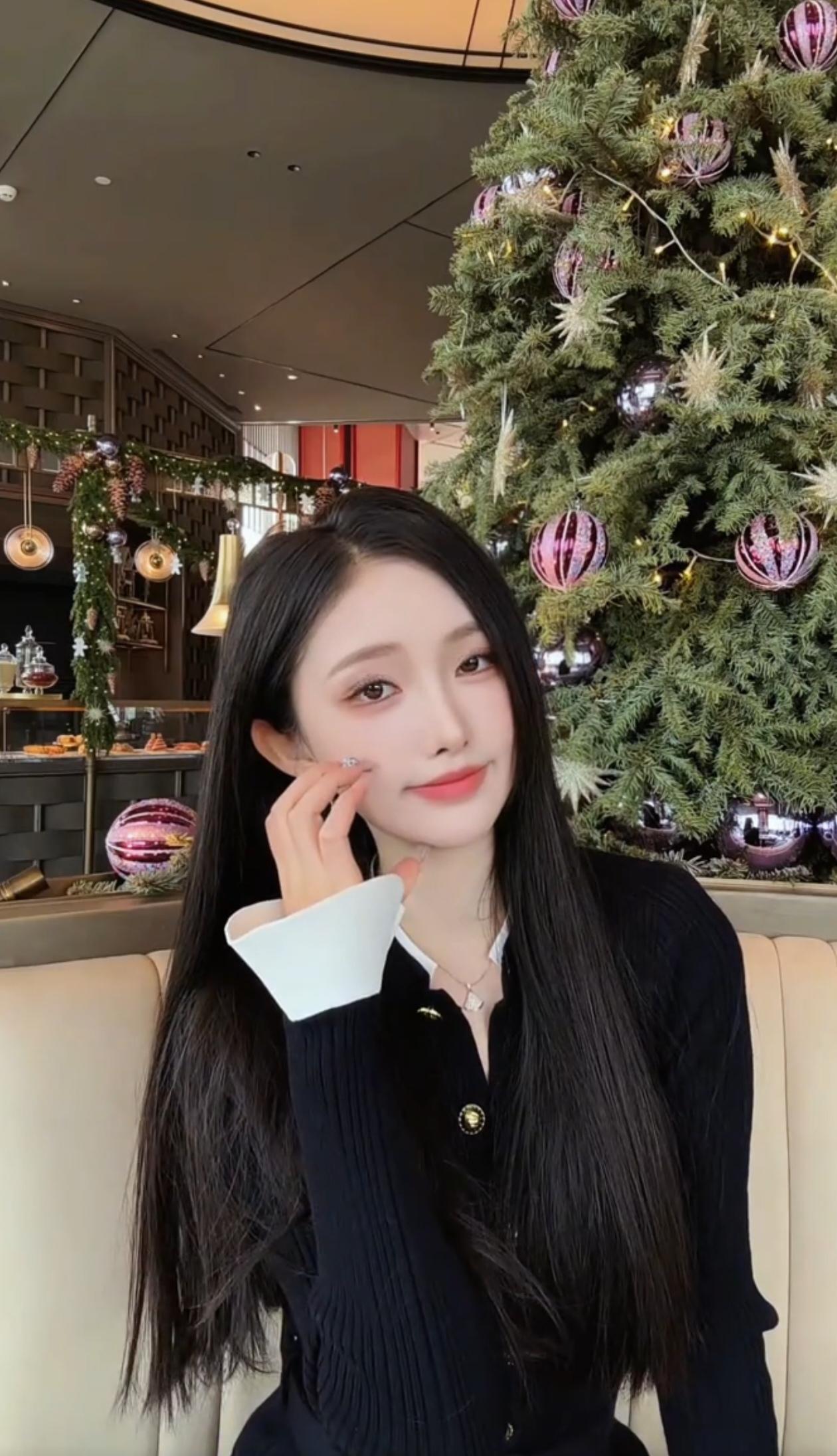 圣诞氛围下的优雅自拍,温暖而甜美