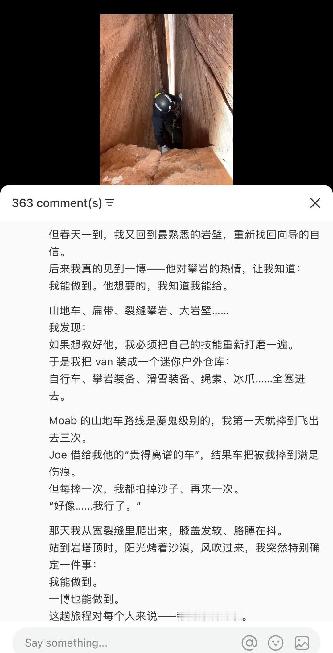 王一博在自己个人ip的户外探索纪实纪录片《探索新境2》中的攀岩搭档史瑞德分享了《探索新境2》的新合照。 接到邀请电话时的他第一反应是:“天啊,我根本不够格吧?我意识到这份责任的重量,这个体验不是随便做做。” 后来……“后来我真的见到一博——他对攀岩的热情,让我知道:我能做到。他想要的,我知道我能给。” 王一博这个人,似乎有着什么神奇的魔力,他对于热爱的执着和给出的专业态度与天赋,能够无形中带给同伴同样的自信和坚定。 王一博 王一博探索新境2