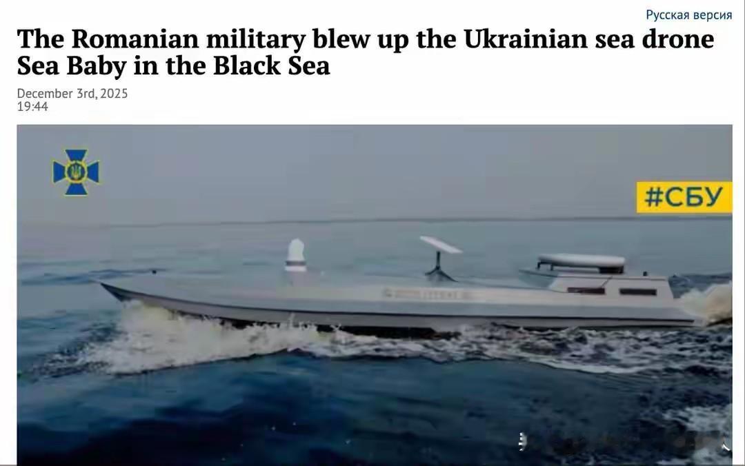 罗马尼亚摧毁乌克兰无人艇 据《EADaily》12月3日报道,罗马尼亚军方在黑海以控制爆破的方式摧毁了一艘乌克兰“海宝贝”海上无人艇。 按照罗马尼亚方面的说法,这艘无人艇漂浮在康斯坦察以东的航道附近,可能对民用船只构成威胁,因此必须予以清除。 然而,这种解释在过去几年里从未出现过。 自俄乌冲突爆发以来,海宝贝是乌克兰最具代表性的攻击性装备,目标明确、来源清晰,只有乌克兰有,只有乌军在用,几乎不可能被误判为其他国家或组织的资产。 ✅乌克兰“海宝贝”无人艇技术参数等 🔺武器系统:配备陀螺自稳遥控机枪架或10管Grad火箭炮,可发射小型自杀无人机。 🔺智能识别:搭载AI敌我识别系统,设有三层自毁机制防止技术泄露。 🔺作战性能:最大载荷2吨,续航1500公里,覆盖整个黑海区域。 🔺实战成果:2025年参与克里米亚大桥第三次袭击,累计击沉11艘俄军舰艇,迫使俄黑海舰队撤离克里米亚。 乌军无人艇