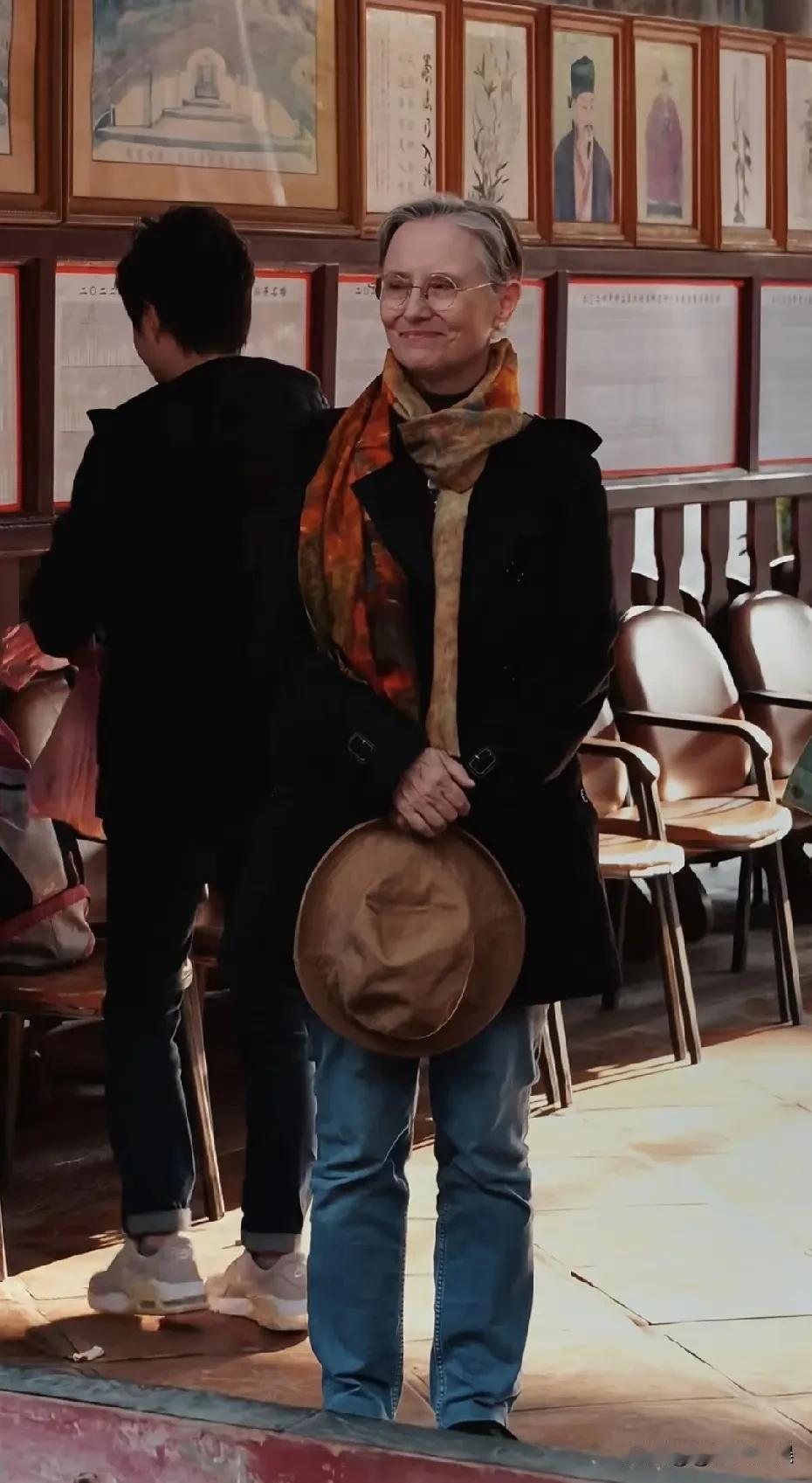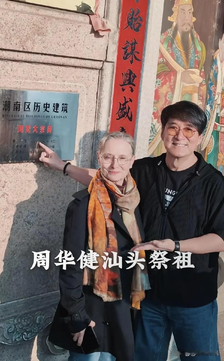 64岁周华健和老婆儿子一起回汕头拜祖,他的老婆看起来好苍老,但气质挺好的。儿子周