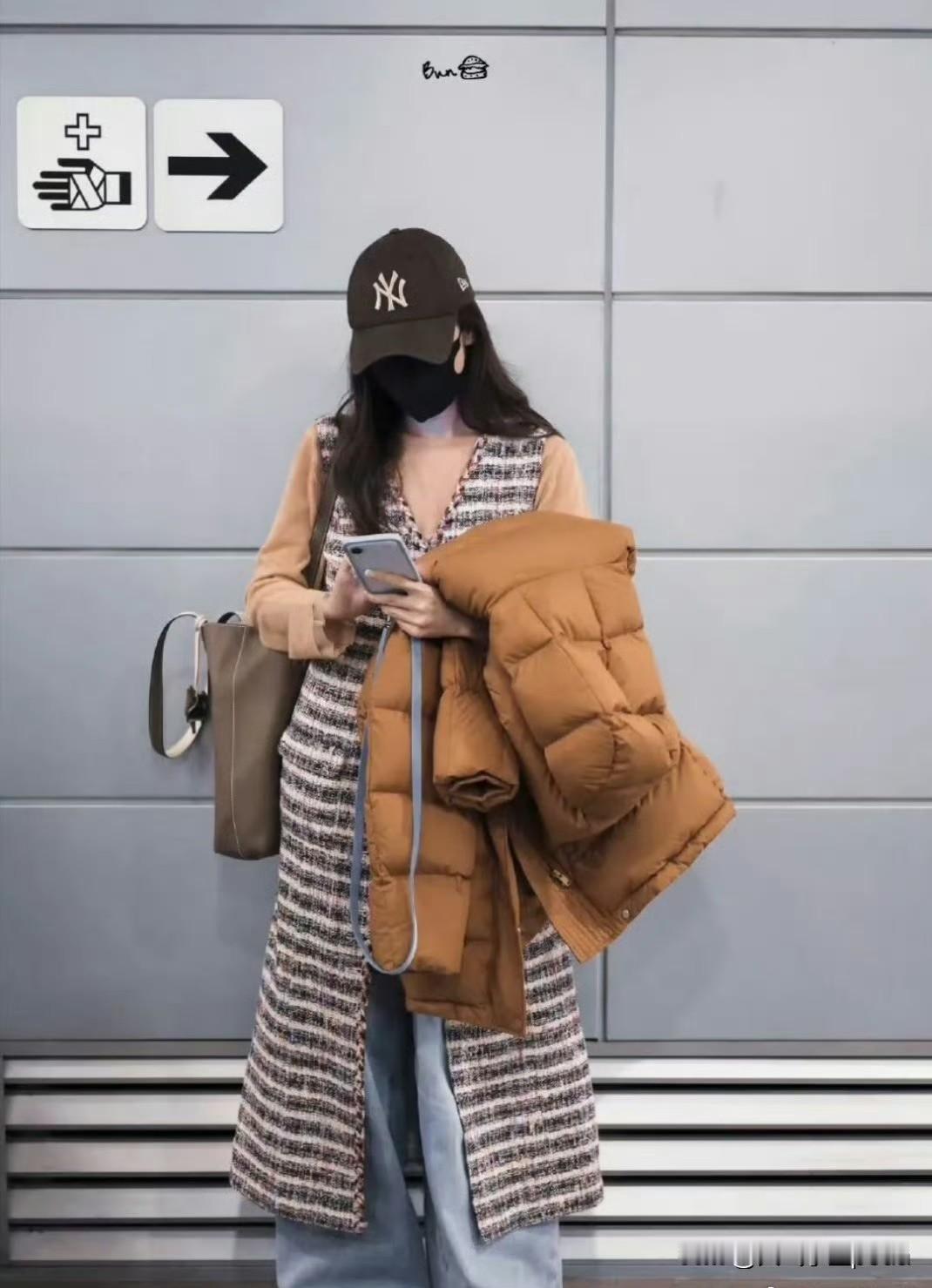 侯佩岑这身机场穿搭真是秋冬教科书啊! 焦糖色系叠搭得太妙了,从大衣到内搭的色阶过渡像杯暖融融的拿铁,温柔不甜腻。 麂皮短靴和皮质手袋的材质碰撞悄悄添了时髦感,棒球帽一戴瞬间拉满复古氛围,明明全身裹得严实却显得轻盈不臃肿。 这种不费力的精致感才最难得,果然会穿的人连赶飞机都在散发暖冬电影感~