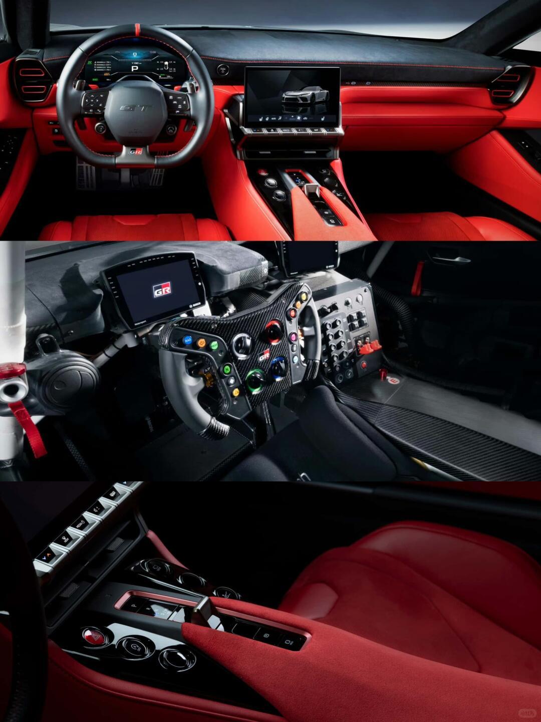 三雄同台,太帅了!雷克萨斯 雷克萨斯LFA概念车、丰田GR GT、丰田GR GT3全球首发!终于能看到一些不一样的新车了🤩雷克萨斯LFA概念车扛起电动大旗,纯电架构+全铝轻量车架,1195mm的超低车高搭配扁宽比例,视觉冲击力拉满。核心卖点是“沉浸驾驶感”,极低坐姿+包裹式座舱,把人车一体的操控哲学搬进电动时代,还传承了2000GT和初代LFA的调校精髓,不过电机参数和性能数据暂未公布。燃油阵营则是GR系列双雄:GR GT定位“可上路的赛车”,前置后驱布局+全铝车架+CFRP车身,目标车重控制在1750kg内,45:55的前后配重堪称黄金比例。动力搭载全新4.0T双涡轮V8+后置电机混动系统,目标650PS+850Nm,极速冲刺320km/h+,性能直逼超跑。GR GT3则是赛道取向的客户赛车,基于GR GT开发并满足FIA GT3规范,同款V8发动机+前置后驱布局,车身宽度、车高和空气套件都为赛道场景专属优化,专为竞技而生。重点划下:GR GT和GR GT3已确定2027年上市,雷克萨斯LFA概念车虽暂无时间表,但电动化+经典传承的组合,已经让性能迷坐不住了!大v聊车丰田gr
