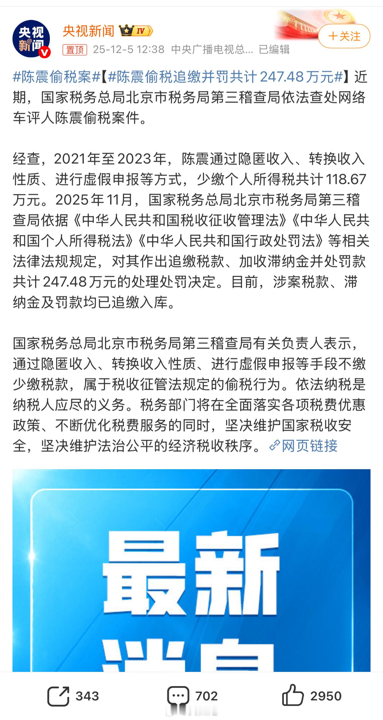 陈震曾发文:纳税是每个公民应尽的义务!逃税才是他妈最可耻的!且是犯罪行为!网友