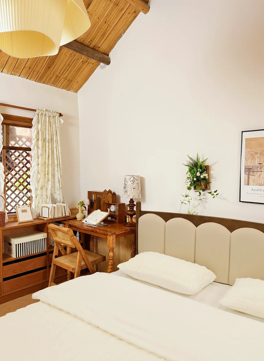 天然胡桃木材质与整个卧室的原木风完美呼应,让普普通通的农村老房瞬间有了奢华的氛围感。
