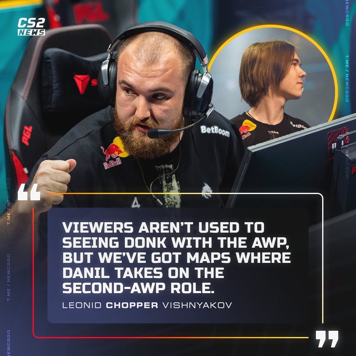 CS2外媒发布:chopper称在有些地图上让donk承担副狙责任