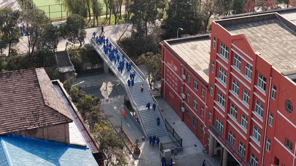 对新建路中学的师生而言,天桥更是“安全通道”与“教学便道”。“不用横穿马路,上下学多了重保障!”学生潘怡然说,“现在去运动公园上体育课的次数都变多了。”学生王馨乐、高怡然也表示,过桥时不用担心车辆干扰,队伍通行不影响交通秩序,安全又便捷。“以前车流量大,组织学生过街上课总提心吊胆,现在天桥直接连通校园与公园,彻底解决了教学活动出行难题。”新建路中学老师徐迟说。