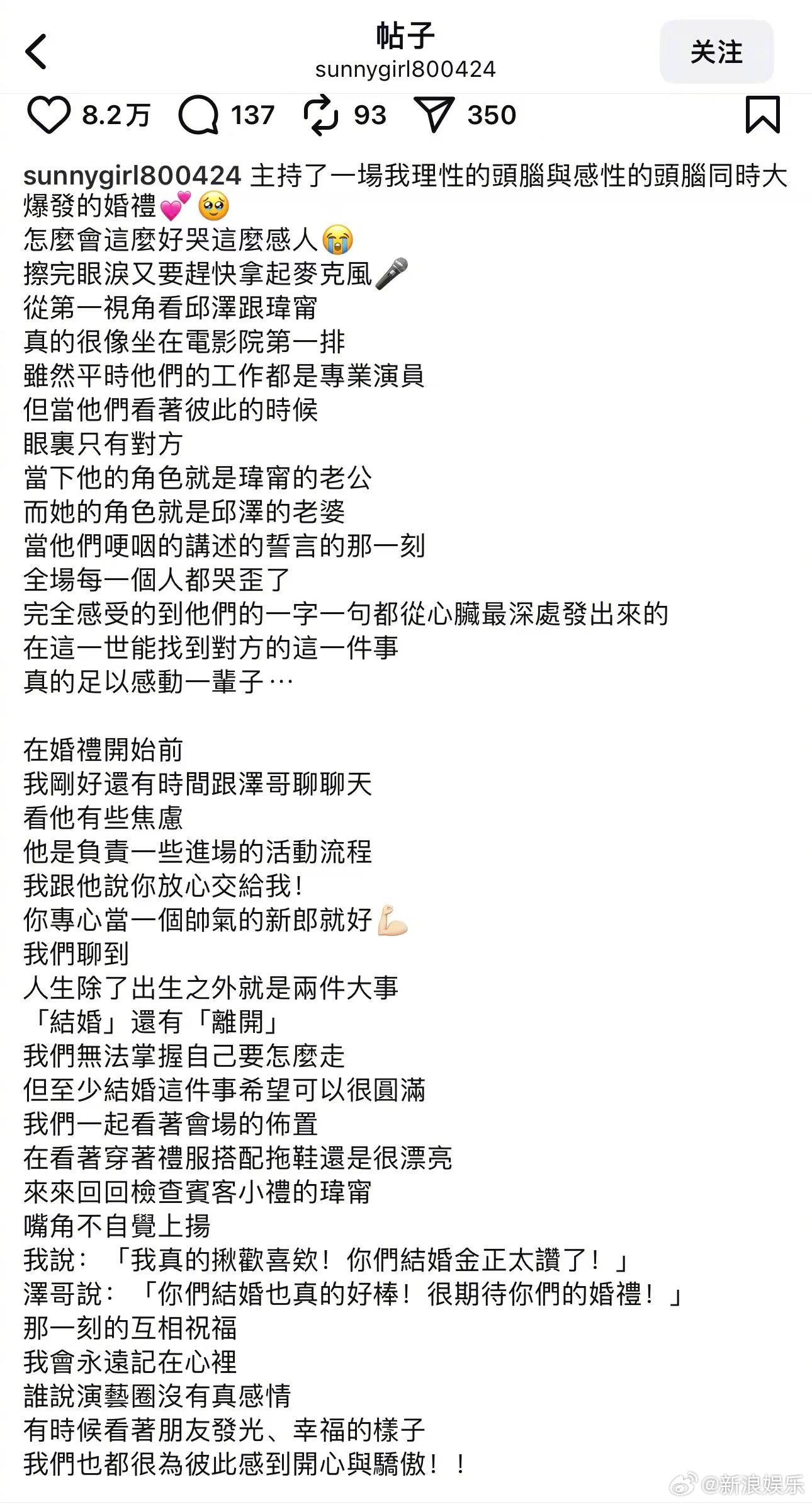 12月3日,Lulu在社媒发文回应主持邱泽许玮甯婚礼,她说自己“理性的...