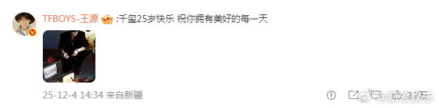 王俊凯祝易烊千玺狂野的一岁天天开心王源王俊凯为易烊千玺庆生 刚刚,晒照为易烊千玺庆生:“祝兄弟狂野的一岁,天天开心!” 随后,也在易烊千玺生日博评论:“千玺25岁快乐,祝你拥有美好的每一天。”