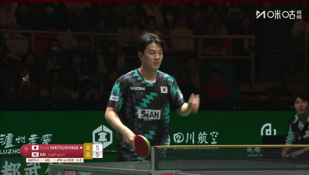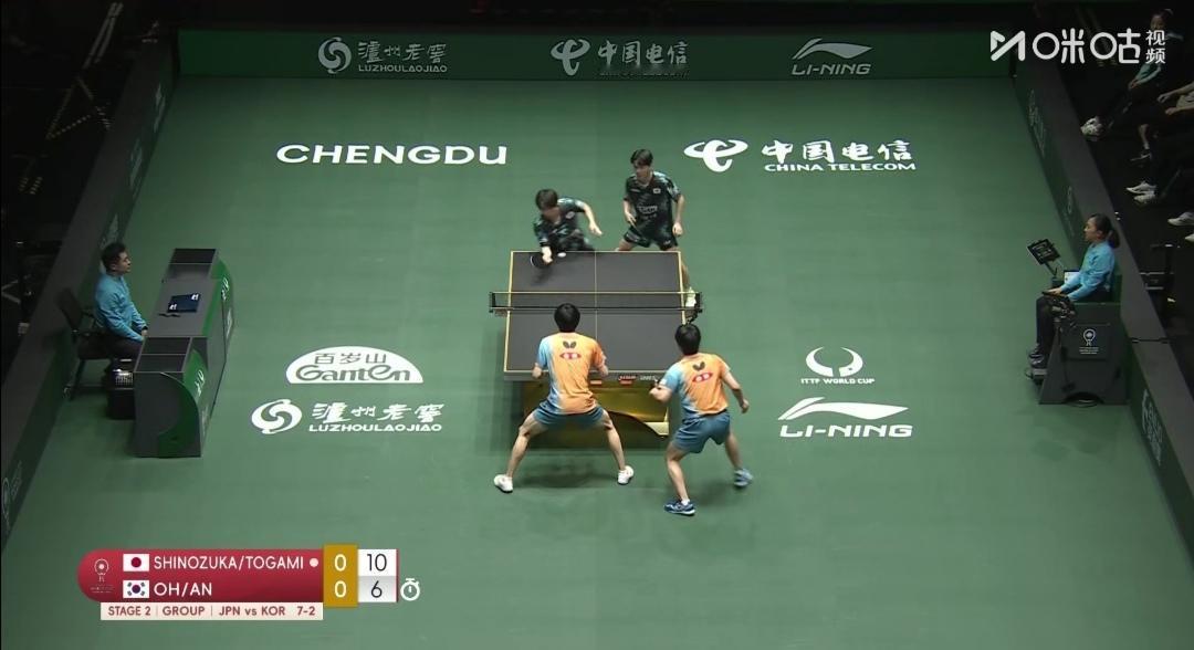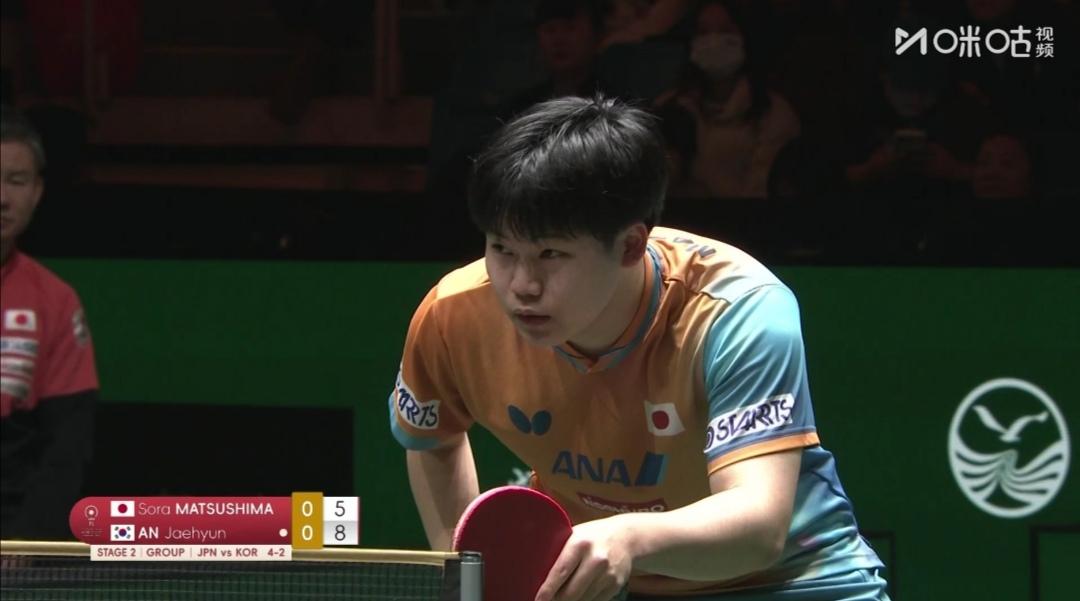 日本队8:2大胜韩国队,七连胜。 12月6日 12:00 中日决战 第二阶段循环赛头名之争! 成都混合团体世界杯第二阶段循环赛,第4轮,晚上两场。 2号种子日本队Vs3号种子韩国队 韩国一哥张禹珍、一姐申裕斌高掛免战牌! 第一盘混合双打 户上隼辅/早田希娜2:1(6-11;11-4;11-6)逆转胜韩国吴晙诚/崔孝珠。 第二盘女单 张本美和2:1(13-11;11-9;7-11)胜韩国李恩惠。 第三盘男单 松岛辉空3:0(11-9;11-6;12-10)零封韩国安宰贤。 第四盘男双 户上隼辅/篠塚大登1:0(11-6)胜安宰贤/吴晙诚 日本队8:2大胜韩国队 ~~~~~~~ 3轮赛毕,瑞典和克罗地亚两个队1胜难求! 第4轮,为荣誉而战,看谁首胜! 瑞典队1:8不敌克罗地亚队 第一盘混合双打 卡尔森/C•卡尔伯格1:2(6-11;13-11;7-11)负克罗地亚沃尔•本/阿拉波维奇。 第二盘女单 伯格斯特隆0:3(9-11;9-11;7-11)完败于克罗地亚拉科瓦奇。 第三盘男单 安东•卡尔伯格0:3(8-11;9-11;8-11)完败于克罗地亚普卡。