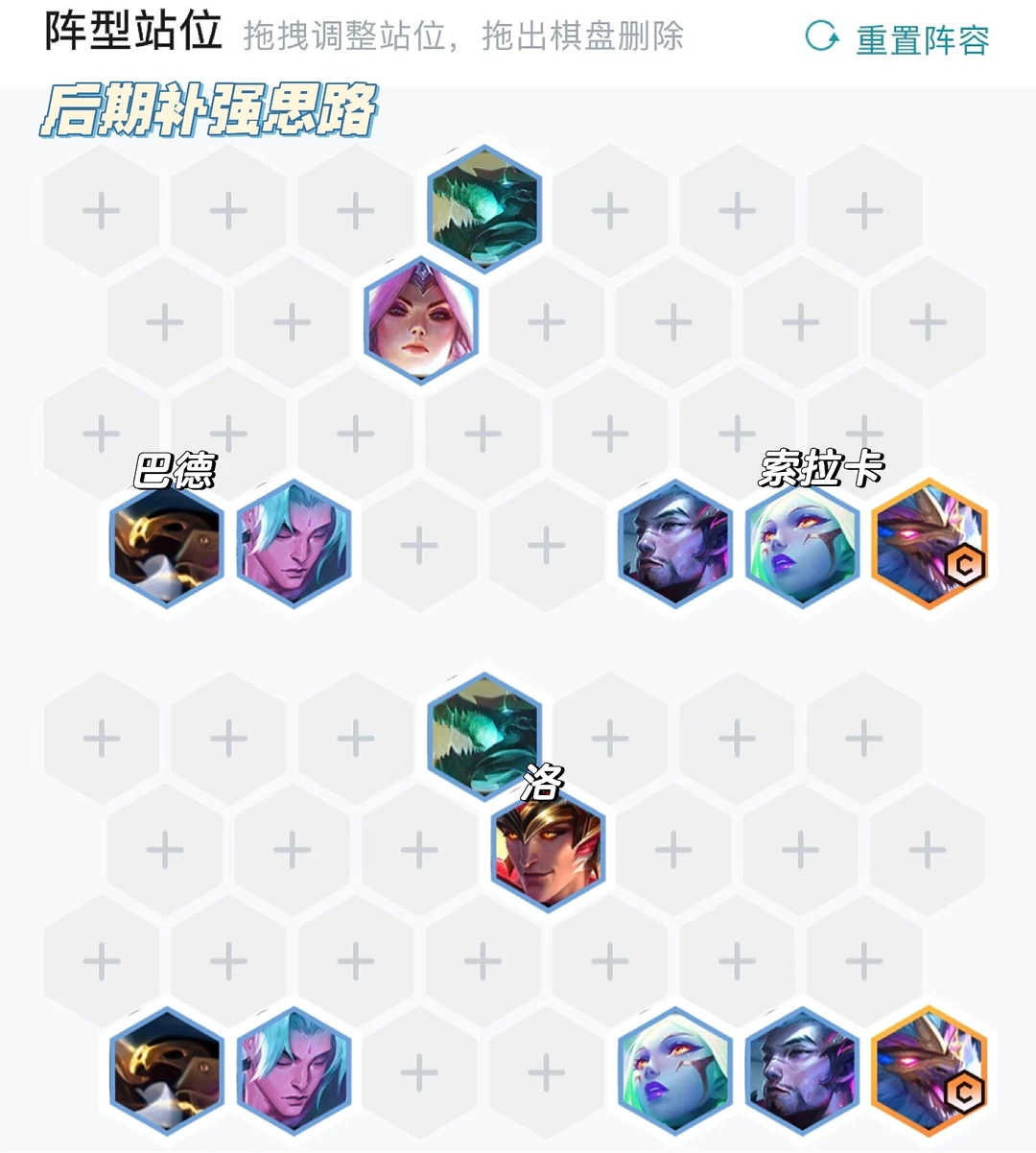 后期开不了高幻就配正常橙卡即可,奶妈巴德都是万能搭配卡,也可以补一手人马控制。