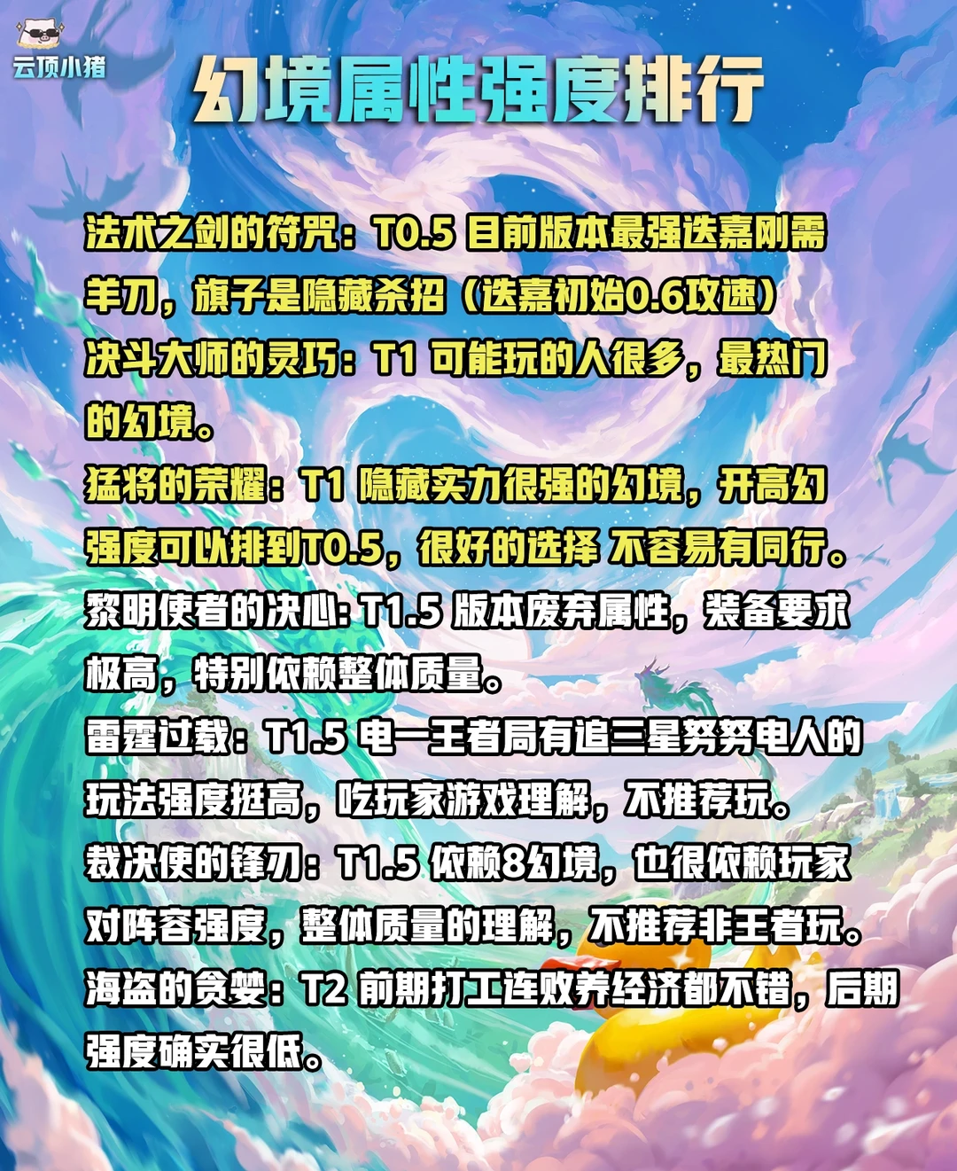 幻境属性不同,强度差距特别大。迭嘉前排质量不可忽视,优先考虑前排装备有时比直接找迭嘉神装更容易吃分。