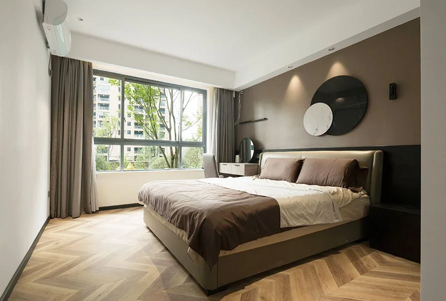 ☘️客厅以暖暖的奶茶色为主色调,在硬装上选择了简洁的装饰方式,鱼骨人字拼木纹砖高级又大气。