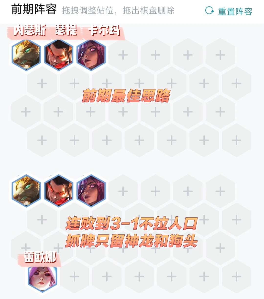 前期思路推荐连败,因为要在3-1抽一波卡,不能升人口大概率也打不到连胜。连败让经济最大化。