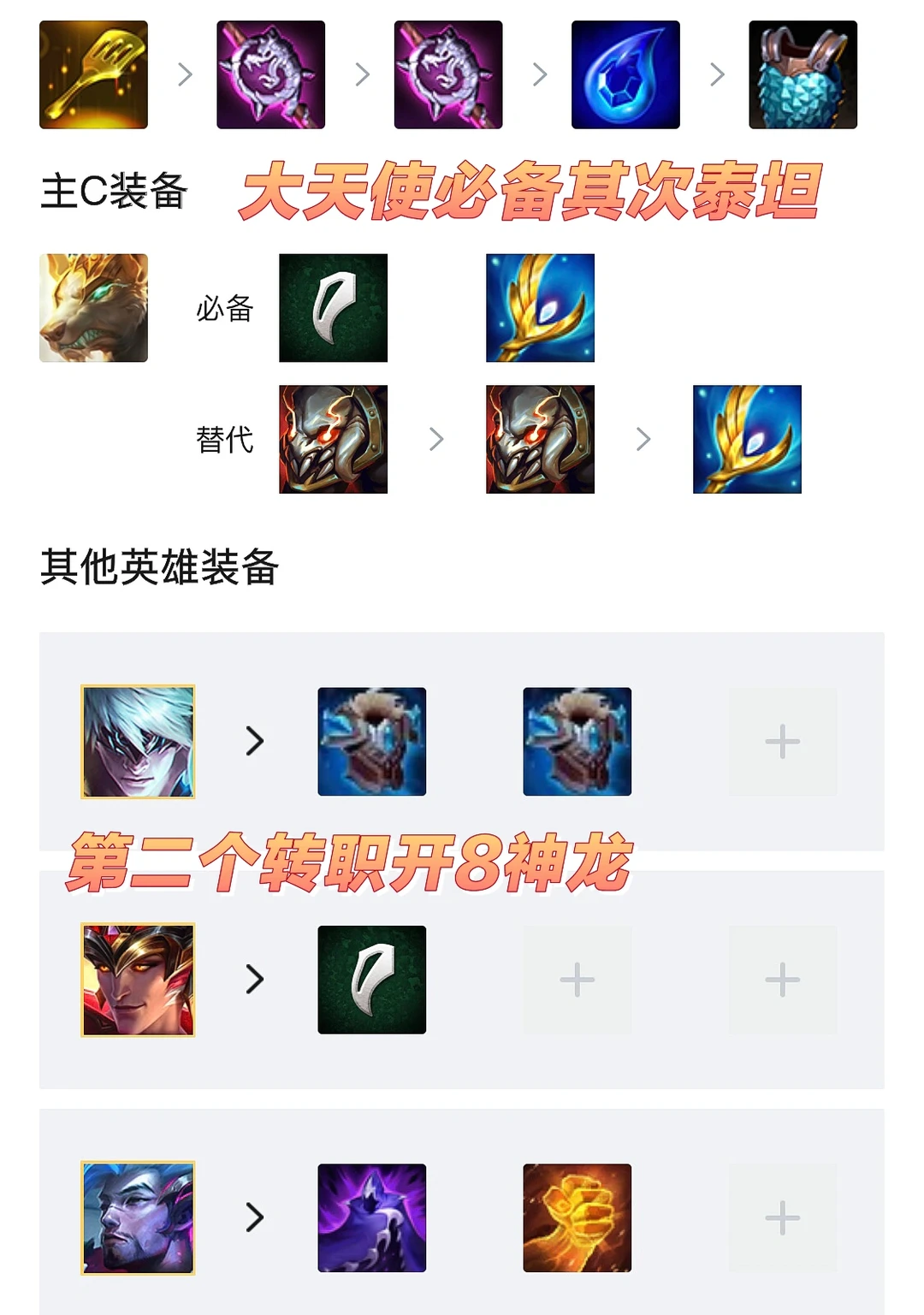 前期开局第一个符文有神龙相关的铲子、转职纹章都行。最差第一波选秀要有铲子,否则不玩。