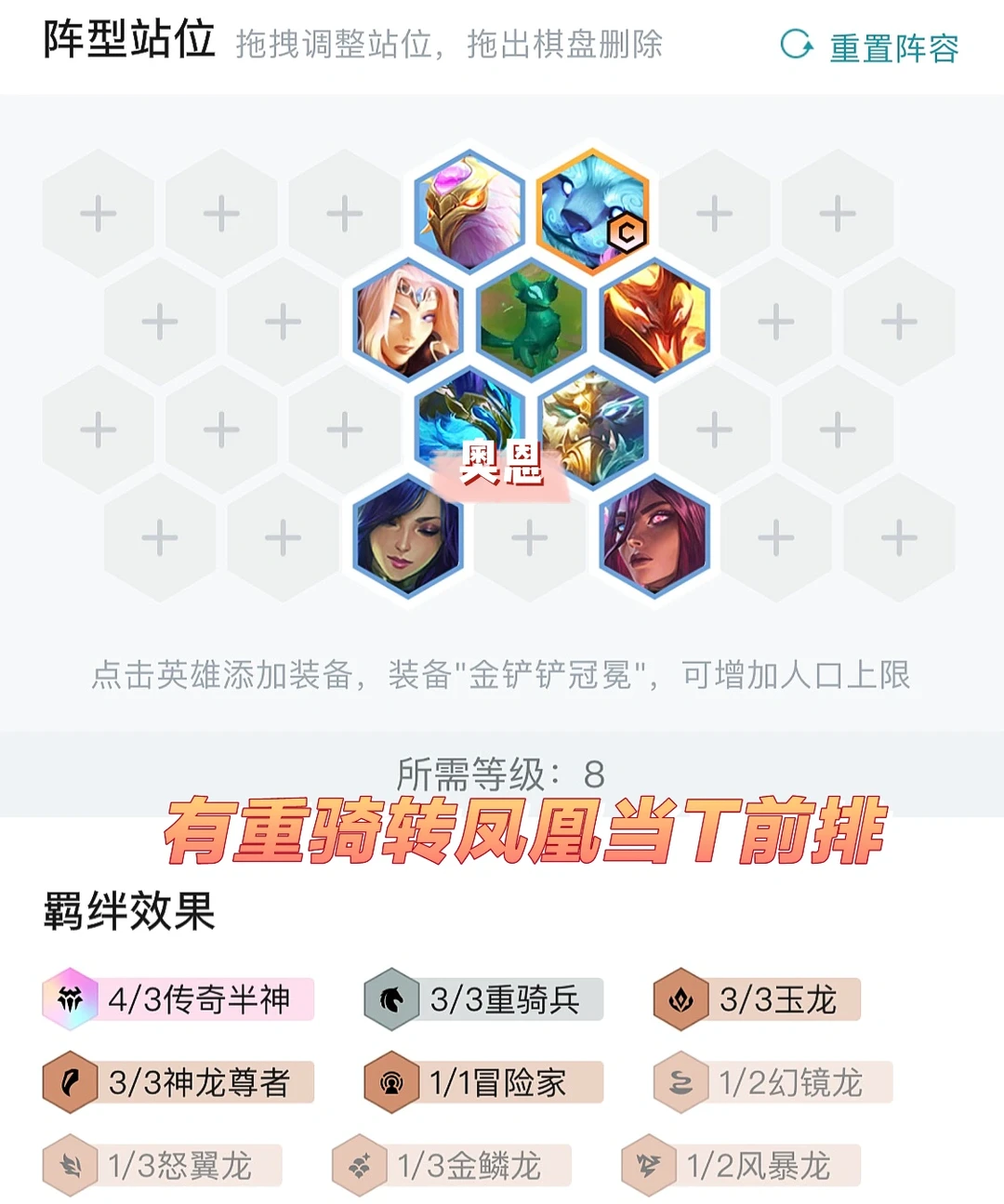 围着玉雕站就行了,如果打驯龙法师或者带巴德的阵容,凤凰奥恩可以不吃祭品,分散单位吸收伤害 控制 远比提供给凤凰奥恩收益来的高。