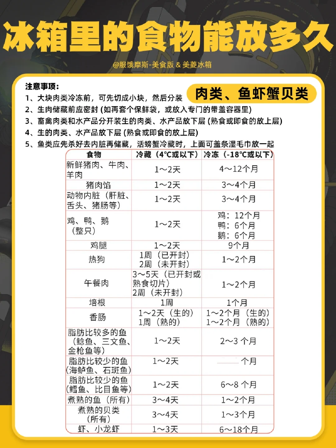 4、生的肉类、水产品放下层 (熟食或即食的放上层)