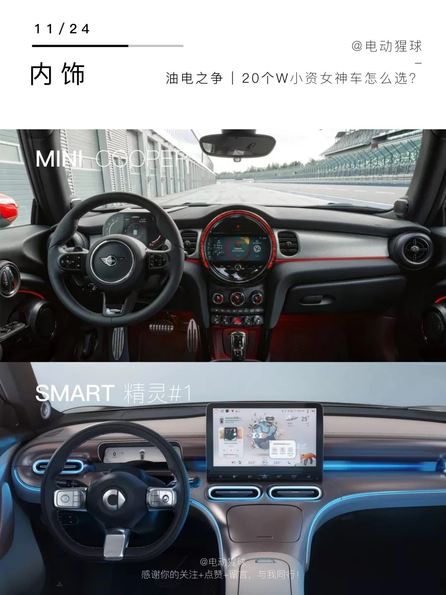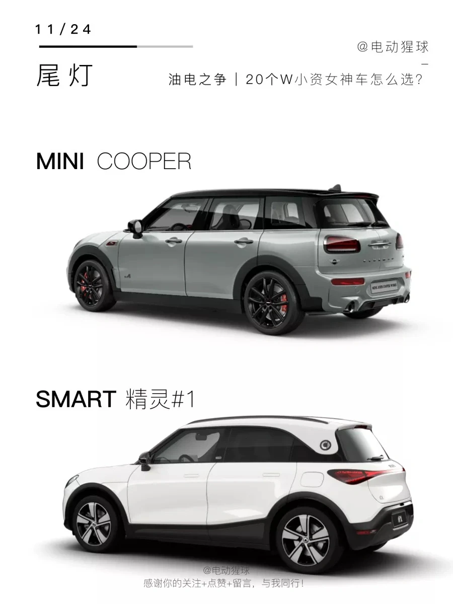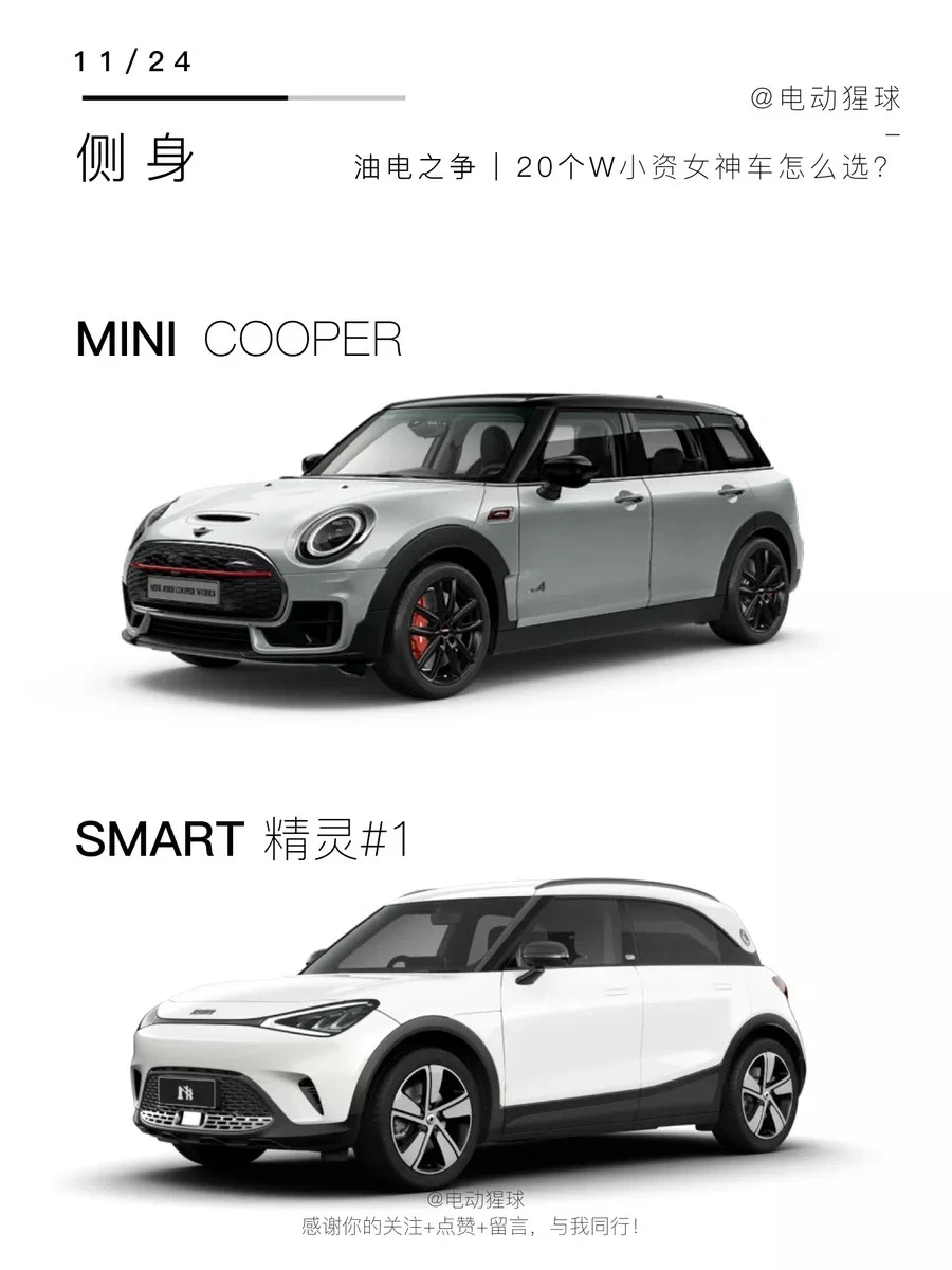 油车时代英伦经典mini cooper,对上精致纯电smart精灵,手握20个W,你怎么选?