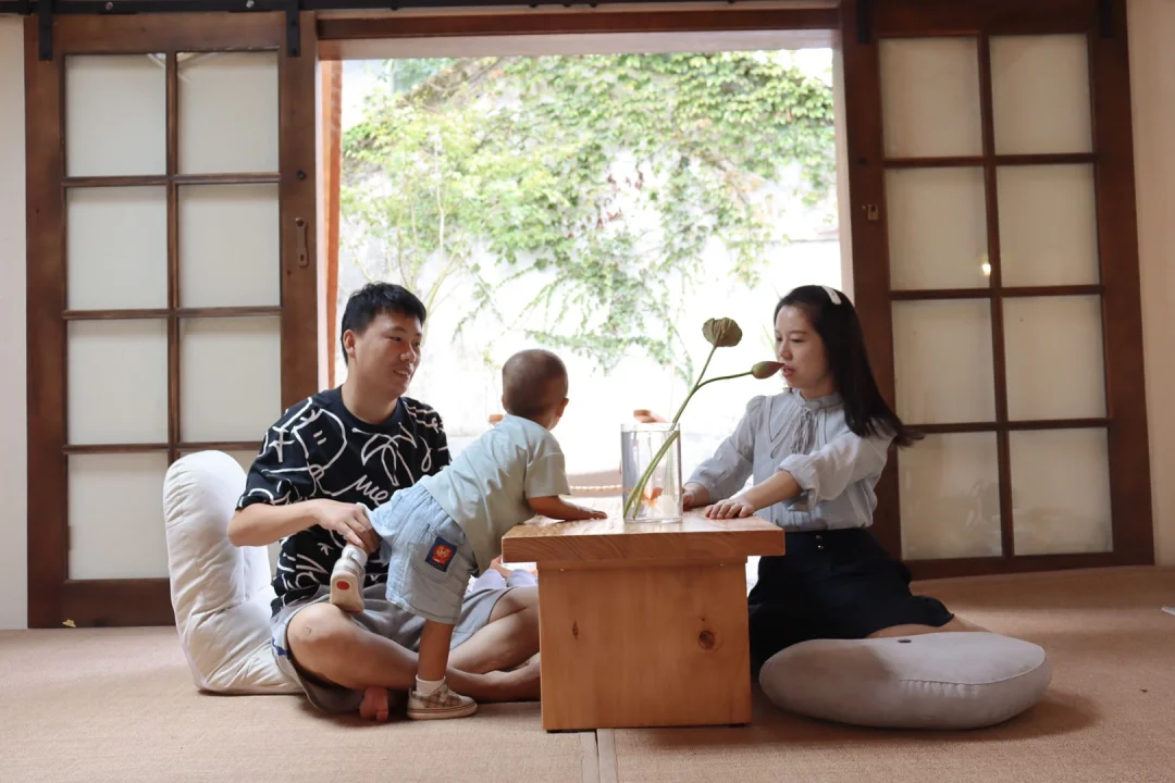 🏠径直走过一颗百年老树,面前的小屋太让人惊喜,七八十平米的老屋经过改造后显得尤为文艺,古朴中不失品味。特别是移动日式门边的榻榻米,让我太意外了,电影《海街日记》里的姐妹们坐在榻榻米上一起吃饭一起拣青梅的场景,一下子在脑海里浮现了出来。内心觉得无比幸福。