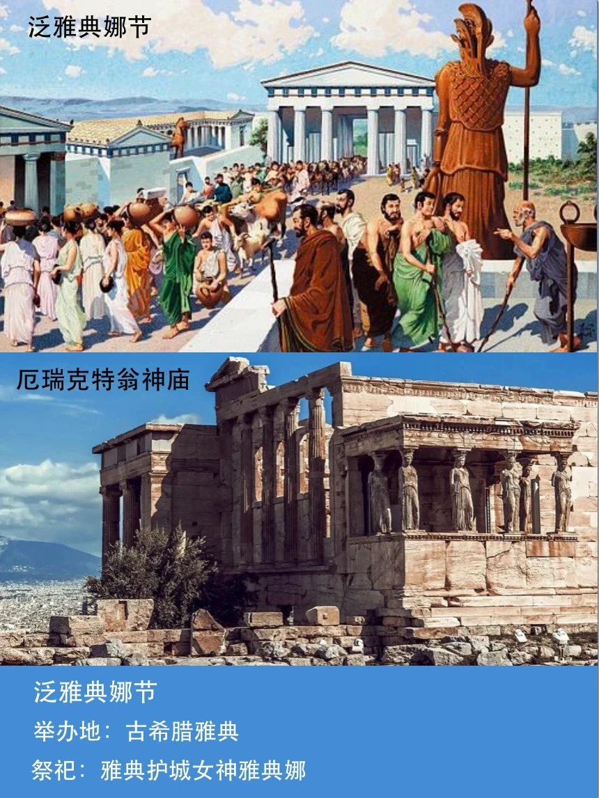 👩🏻🦳泛雅典娜节也是超级盛大的节日,游行队伍有战车骑手、长老乐师、被献祭的100头牛、少男少女,浩浩荡荡地来到厄瑞克特翁神庙向雅典娜献上长袍,然后嘞,100头牛开吃。