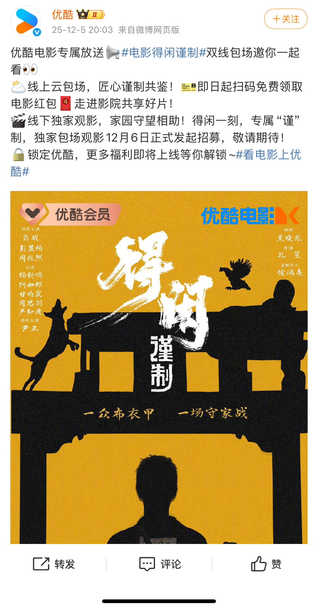 这次给得闲谨制云包场的人和合作方真是特别特别特别多!优酷也包了, 藏海传也包了,翟子路也包了!还有🐧 包了又包!!!
