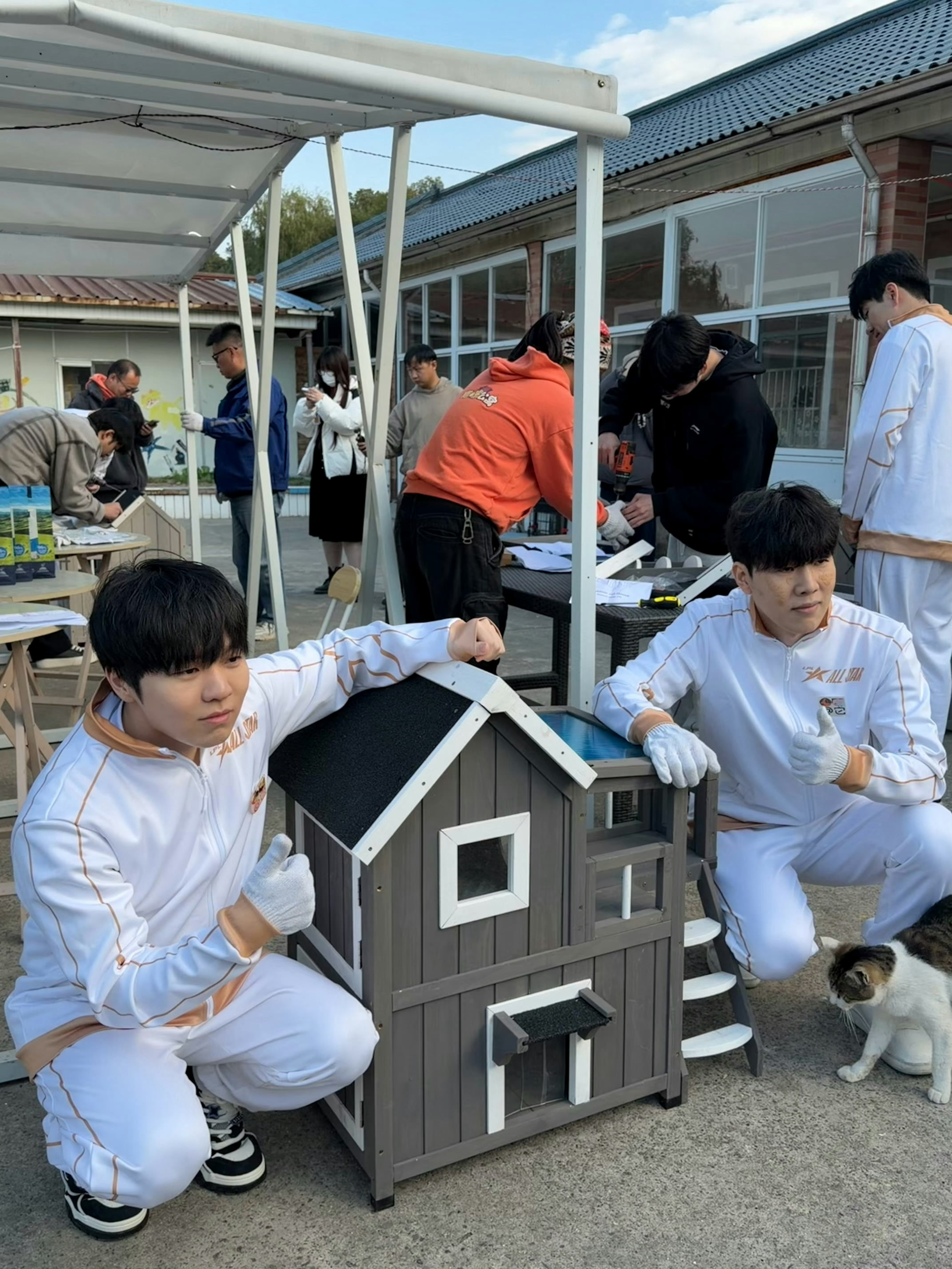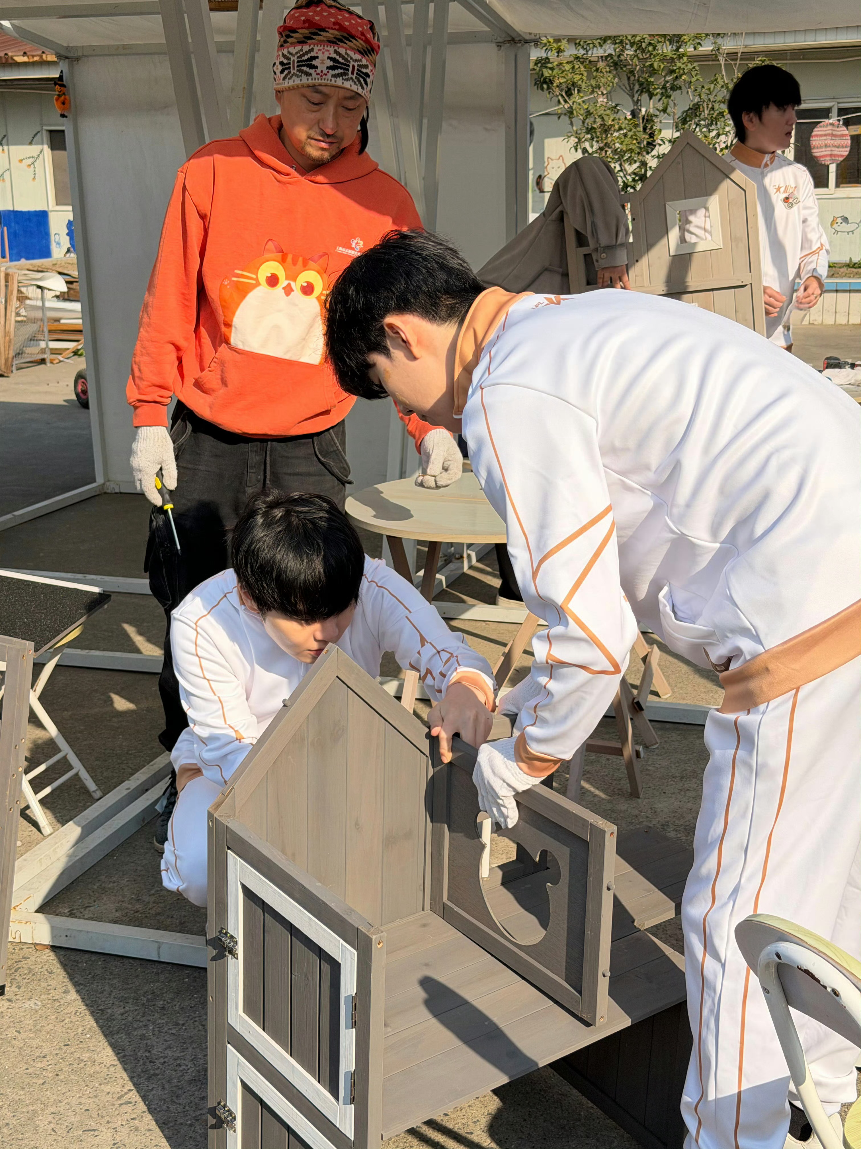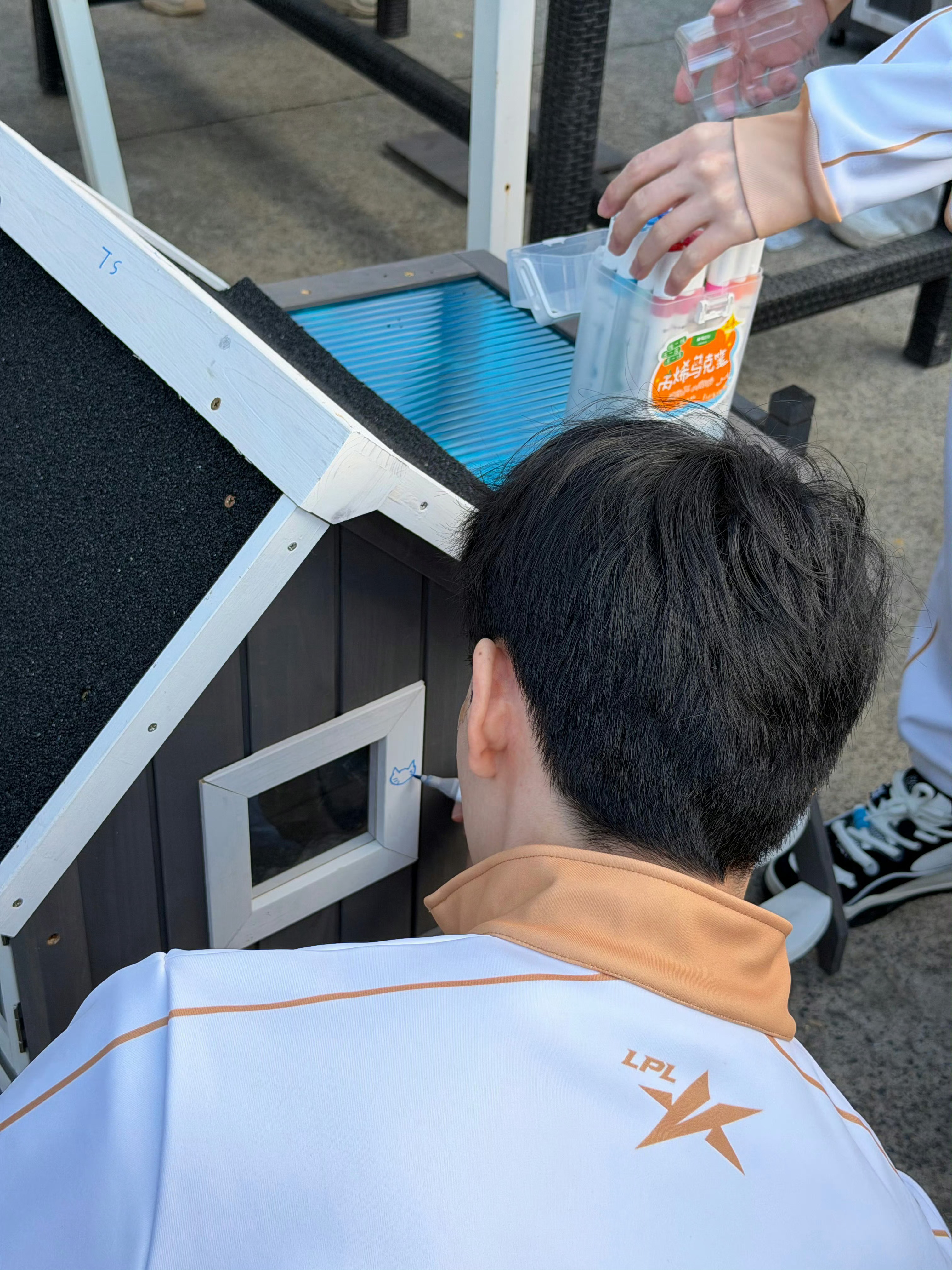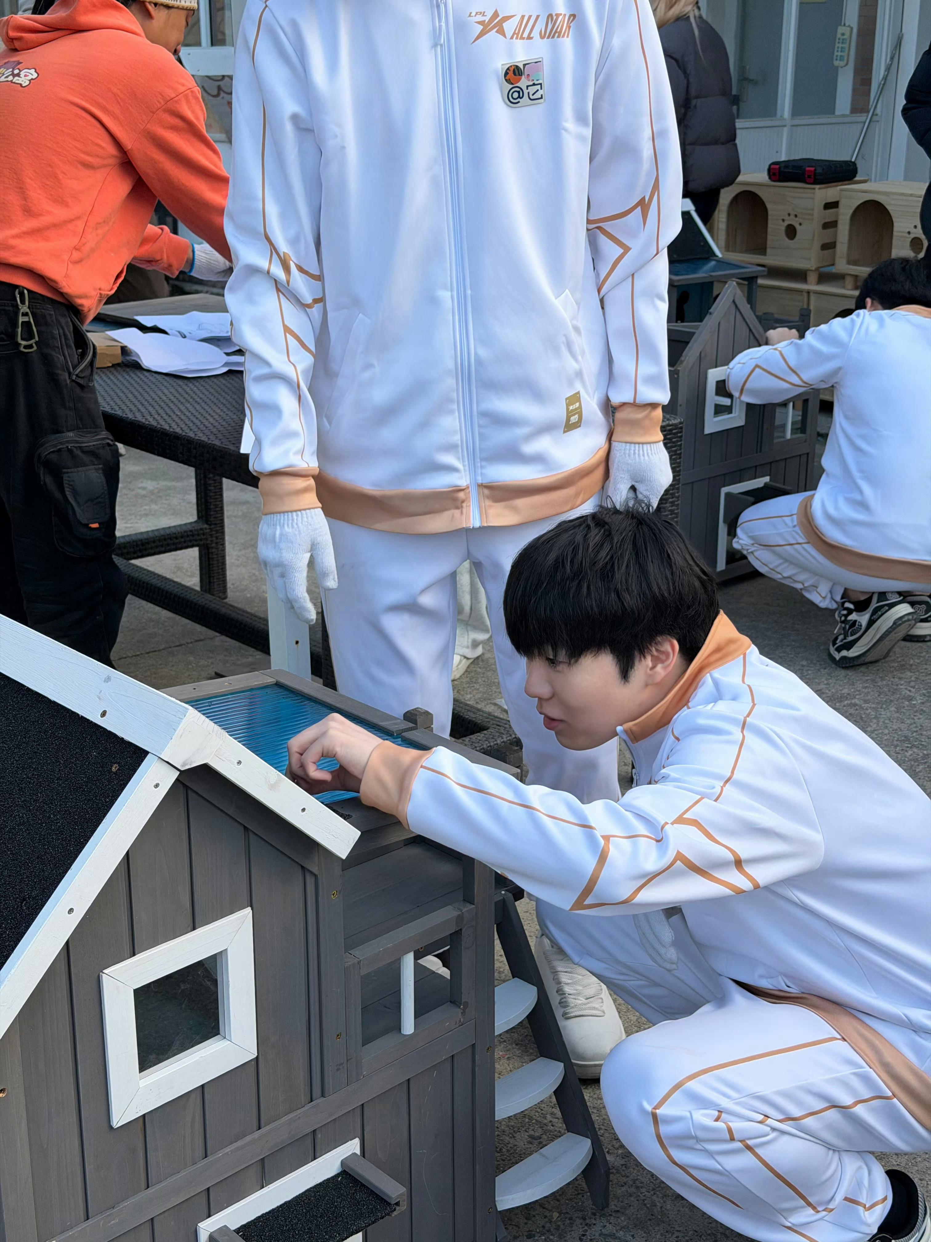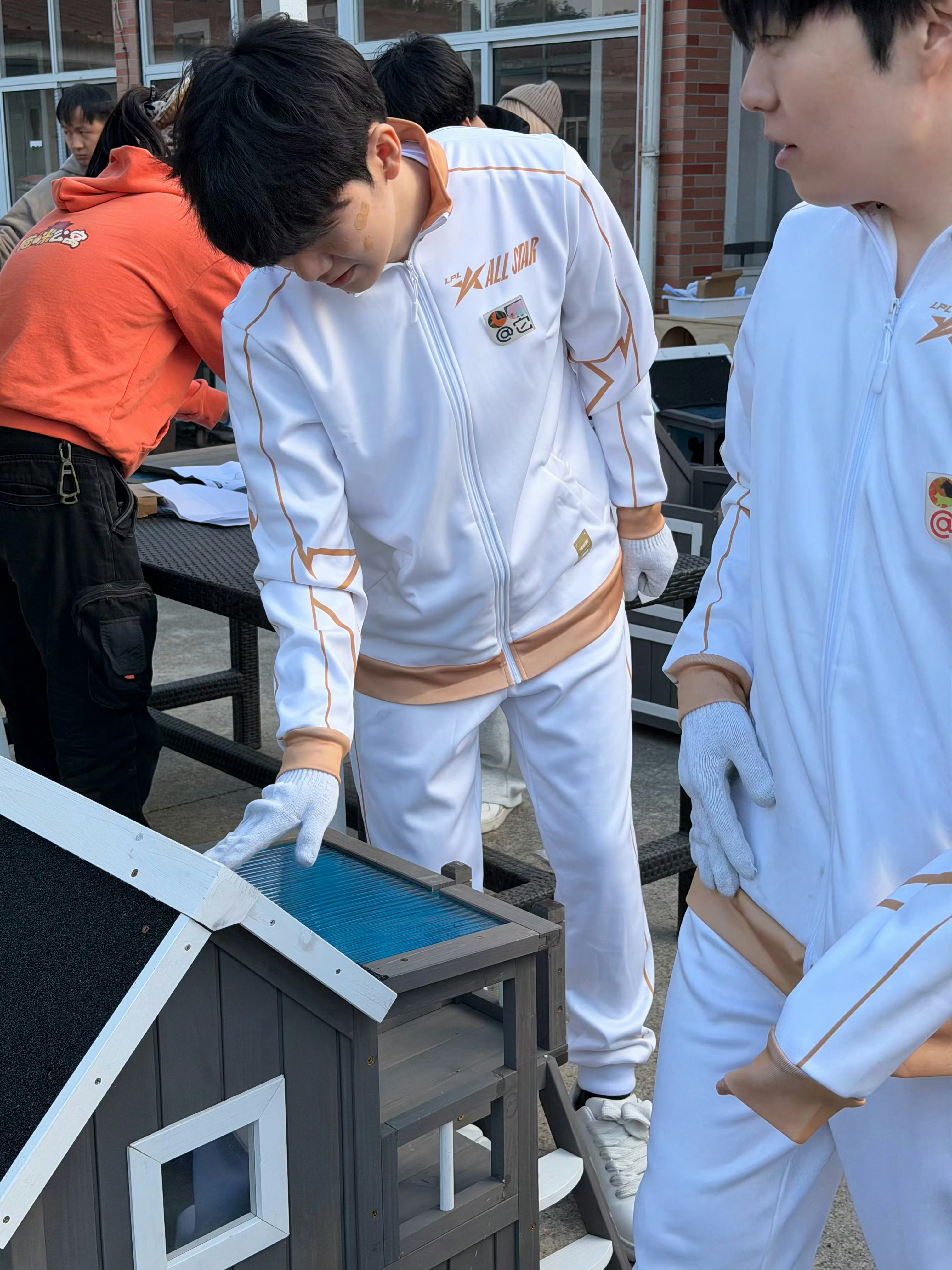 让爱终止流浪!Park刚看到全明星周末到来前的暖心行动!联盟组织了来自AL、WBG、TES、IG、JDG的十位LPL选手来到流浪猫之家,号召赛事爱好者能用领养代替购买。其中TheShy和Rookie手把手搭猫屋,一个人扶着、递工具,一个人使电钻,配合到位,这就是iG仁川冠军上中的默契!!最后哥俩还和自己亲手搭的猫屋拍了合照。期待一下LPL Care的下一波行动,图片的最后有彩蛋哦TheShy和Rookie搭猫屋2025LPL全明星公益日ACG优创官