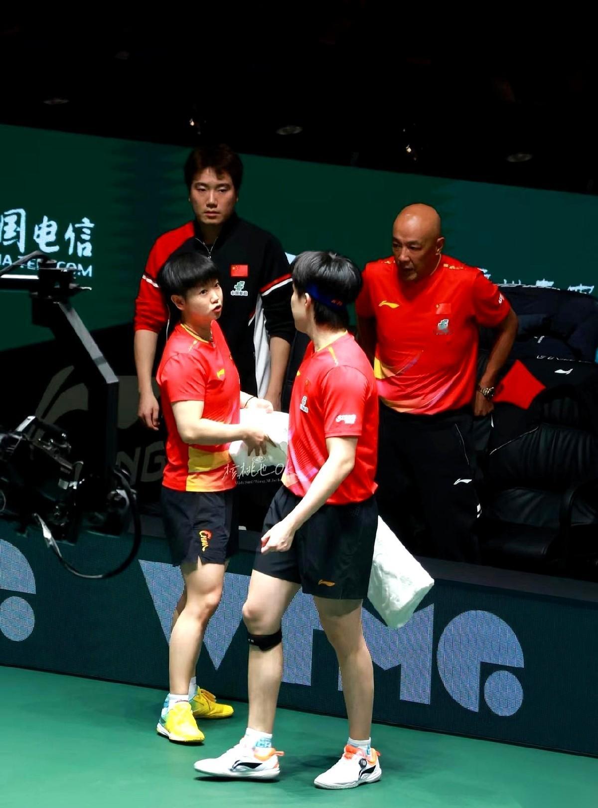看傻了,真的看傻了。 孙颖莎“duang”一下蹲在地上,王大头抡圆了胳膊一板爆冲,球就从莎莎头顶上“咻”地一下飞过去得分。 一局里面,这招他们俩玩了三次! 第一次看,我心里喊牛逼。第二次看,我倒吸一口凉气。第三次看,我只想说:求求了,给对手留条活路吧…… 这已经不是打球了,这是在表演,在秀,在告诉全世界什么叫“人球合一”。 我每次看都替莎莎捏把汗。 那可是时速一百多公里的球啊,擦着头皮过去。这得是多大的信任,多心有灵犀,才敢把自己的后脑勺就这么完全交给队友啊? 换我?我早趴地上了,还得抱住头。 还有莎莎那个反应,蹲下去躲球,躲完还能秒起身,跟没事人一样继续对拉。这反应速度,这腰腹力量,说她有八百个心眼子,我看这八百个全都用在算球路上了。 也别说对手了,我们自己人都看呆了。 肖指导在后面稳坐钓鱼台,丁宁也在旁边看着,那个眼神,估计一半是欣赏,一半是“我当年怎么没想到这么打”。 人家混双是1+1=2。 我们这儿是1+1=王炸。 真骄傲啊。