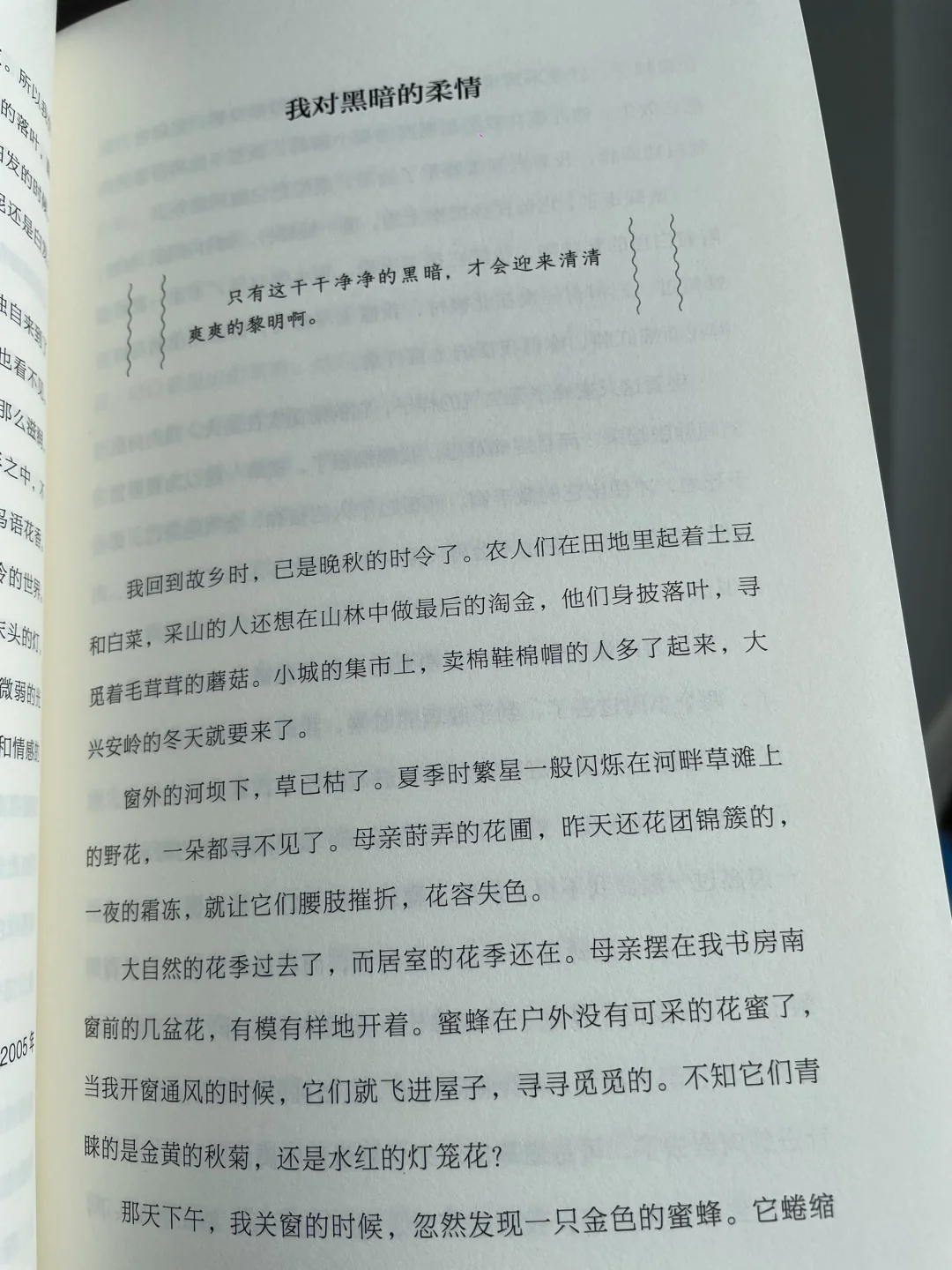 📗书名:《鲸鱼安慰了大海》 ✏️作者:燕七 🌟是流星赞美了黑夜,鲸鱼安慰了大海🌊 一本会呼吸的诗画集,作者用最干净的文字,写尽城市里的悲欢、聚散、苍老与天真。读它时像在月光下听老朋友轻声说话,那些说不清的心事,都被这本书温柔接住了。人生海海,谢谢你让我不改天真 —— 📗书名:《也是冬天,也是春天》 ✏️作者:迟子建 被称为“治愈散文天花板”不是没有道理。迟子建笔下的北国,白雪覆盖着生命的绿意,寒冬里藏着春天的伏笔。最喜欢这句:“人生是可以慢半拍再慢半拍的”。如果你正被生活追赶着跑,这本书会教你如何做一名“生活的迟到者” —— 📗书名:《独自走向旷野》 ✏️作者:燕七 🛤️人生不是轨道,而是旷野 献给所有在人群中感到疲惫的灵魂。这本小诗集是低能量时期的充电宝,独处时的好朋友。它轻轻松开社会绑在我们身上的绳子,告诉你:走向旷野不可怕,独自面对世界也很美 —— 📗书名:《人生在世,自作多情》 ✏️作者:池莉 🥘如果你爱人间烟火气,一定要读池莉 她说生活是一场自作多情的盛宴,要对一饭一蔬多情,对一言一笑多情,对自己多情。在匆忙时代里,这本书教会我如何把日子过成诗。信其所言:“你仰望处,总有大爱在爱着你” —— · 💫 一本为你写诗,一本带你欣赏雪国 一个陪你去旷野,一个让你回归生活本真 · 累了倦了迷茫了,就挑一本读吧 让文字成为照亮你的小月亮✨