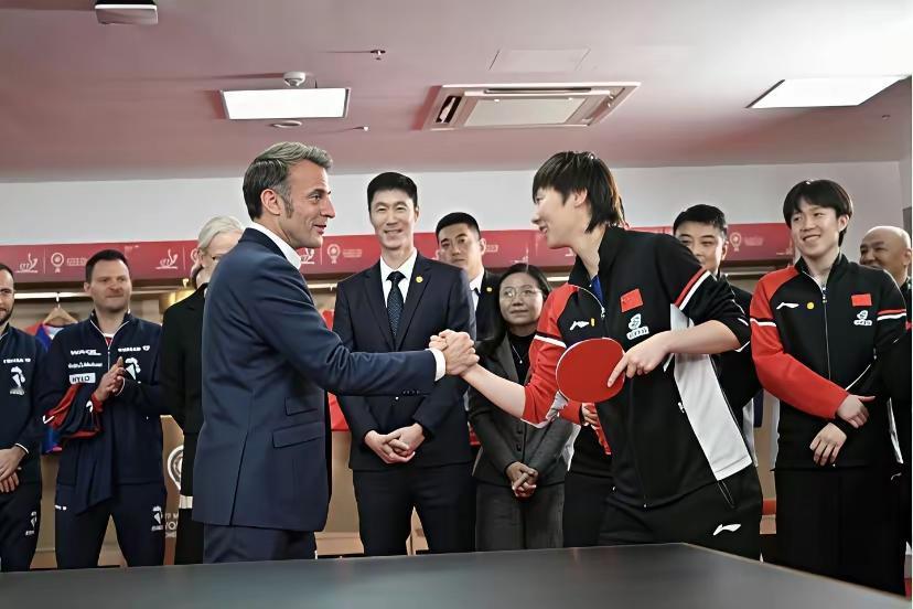 王曼昱这气场绝了! 马克龙到访成都体育馆,和正在参加混合团体世界杯的国乒队员互动,镜头扫到他和王曼昱握手时,那眼神里的欣赏藏都藏不住。 但更让人眼前一亮的是王曼昱——面对外国元首,既没有过度拘谨,也没有丝毫松懈,握手时身姿挺拔,笑容从容,浑身上下透着一股“强者自带的稳”。 这种不卑不亢,可不是装出来的。 你看她赛场上挥拍时的狠劲,训练时磨出的茧子,拿冠军时的冷静,早就把“底气”刻进骨子里了。竞技体育拼到最后,拼的不只是技术,更是心态。能在国际赛场一次次顶住压力,面对再大的场面自然稳得住。 有人说这是“大国运动员的范儿”,其实说到底,是实力给的勇气。王曼昱拿过的那些奖牌,流过的汗,都是她站在任何场合都能从容应对的资本。 不像有的明星见了大人物就手足无措,运动员的气场是实打实练出来的。球台旁练出的专注力,赛场上学到的抗压能力,让她面对镜头和外宾时,自带一种“我靠实力说话”的坦然。 马克龙眼里的欣赏,与其说是对个人的,不如说是对这种“强者气质”的认可。一个能在世界赛场为国争光的运动员,站在任何舞台上,都自带光芒。 这两年总说“松弛感”,王曼昱这状态才是真·松弛——不是漫不经心,是有底气的从容。知道自己的价值在哪,清楚自己的位置,所以不用刻意讨好,也不必刻意端着。 国乒队员身上总带着这种劲儿,赛场上能拼杀,赛场下有风骨。王曼昱这一幕,算是把“中国运动员的精气神”给演活了。 你觉得这种不卑不亢的气质,是不是比任何刻意的“表现”都更圈粉?