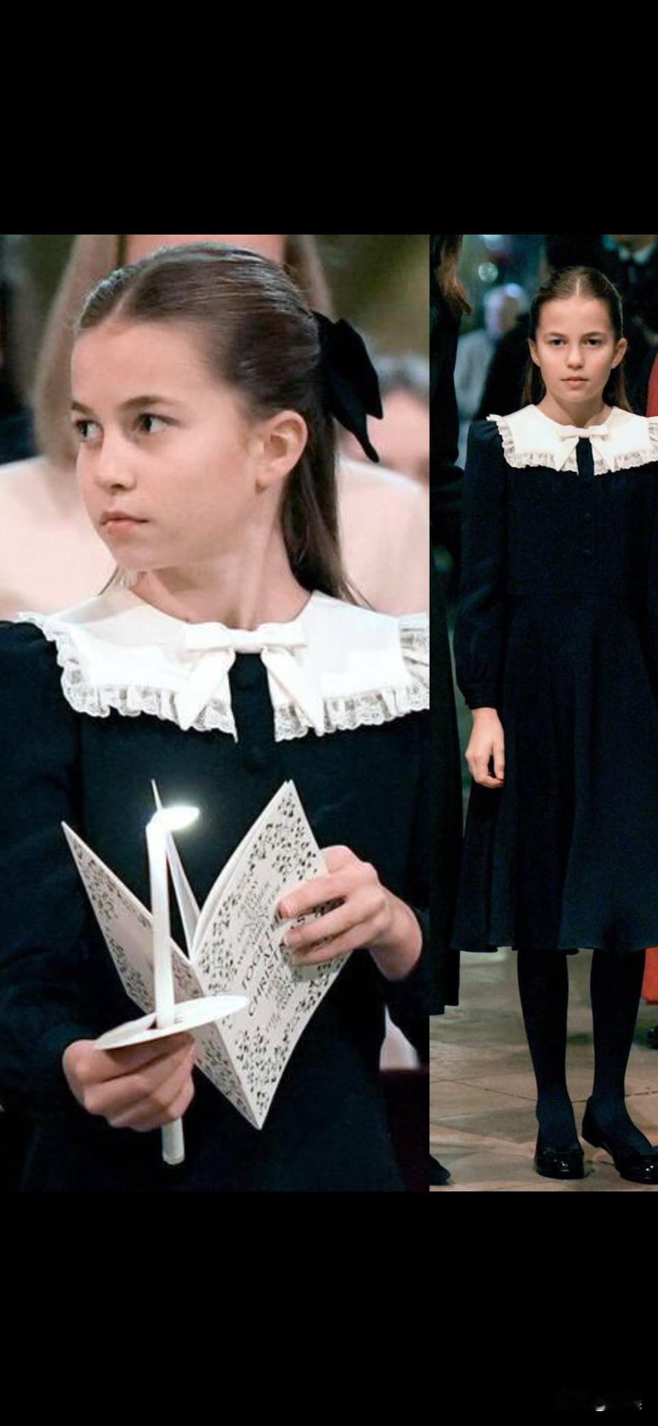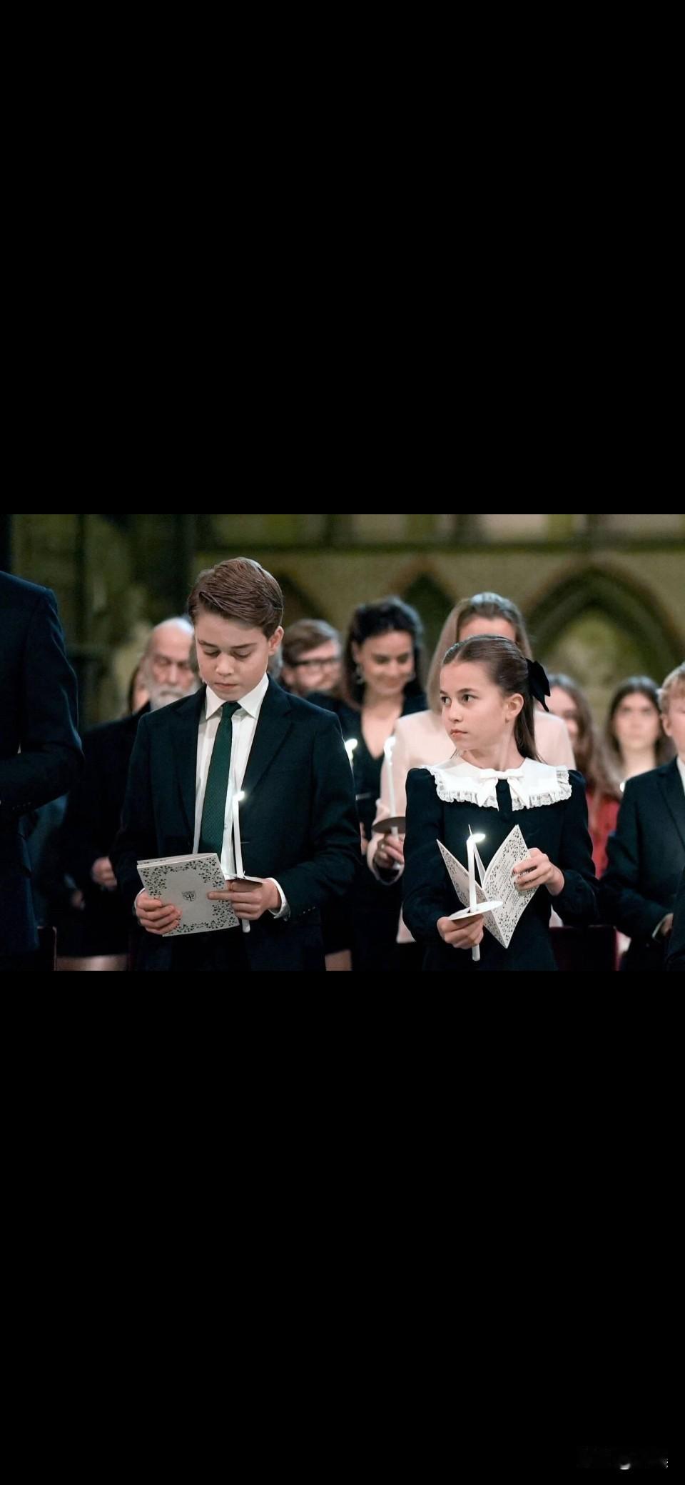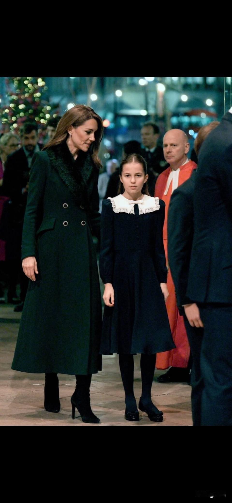 又一年!真公主的圣诞颂歌仪式🎄 凯特王妃一家今日现身威斯敏斯特教堂,参与一年一度的圣诞颂歌仪式。久违的威尔士三宝合体,都越来越稳重了! 夏洛特公主穿着深蓝色连衣裙,和乔治王子、路易斯王子、爸爸威廉同色系;妈妈凯特不止一次穿过的这件墨绿色大衣,来自她常穿的品牌Catherine Walker。 教堂里的几张色调质感好有节日氛围✨凯特王妃 威廉凯特