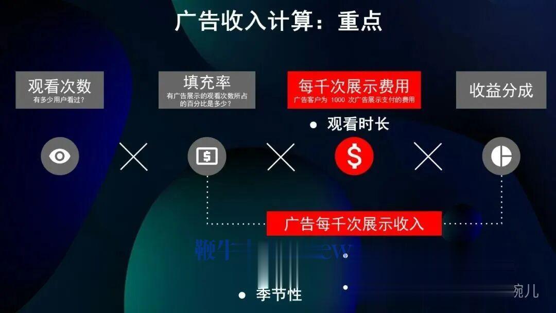 很重要的是大家观看次数以及广告填充率以及每千次展示费用和利润分成,这是一套公式。好的内容一定会吸引更多的观众观看,还有每千次展示费用和观看时长,我们发现短剧比一般的视频容易赚钱的原因是因为短剧变成合辑,用户观看时间长,除了片头广告、片中广告还可以插数字的广告。