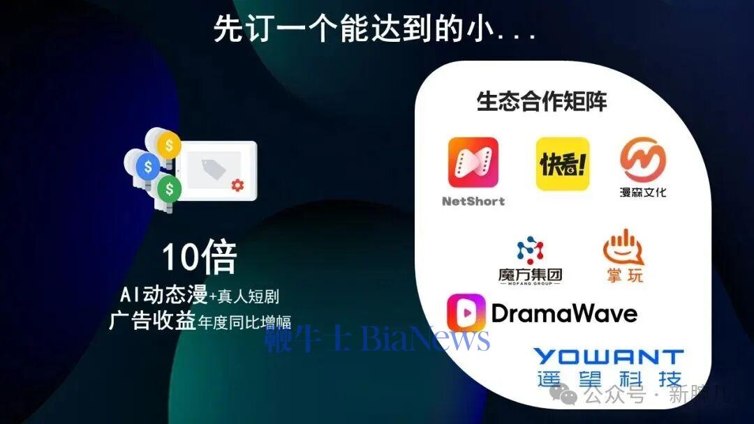 这里举的是一个合作伙伴的例子,它打造了矩阵,包括内容合作伙伴以及运营合作伙伴,他们在AI动态漫和达人短剧广告收益增长了10倍左右。我跟很多朋友分享这个数据,都觉得不可思议,但在目前这个时间点发现我们设定的目标并不是遥不可及。因为国内的短剧蓬勃发展,YouTube有滞后的现象,所以我们预计2026年YouTube平台的短剧还会持续增长。2024年到2025基数比较低,我们预估2026年漫剧会增长至少3倍以上,所以非常欢迎各位和我们一起探讨漫剧的机会。