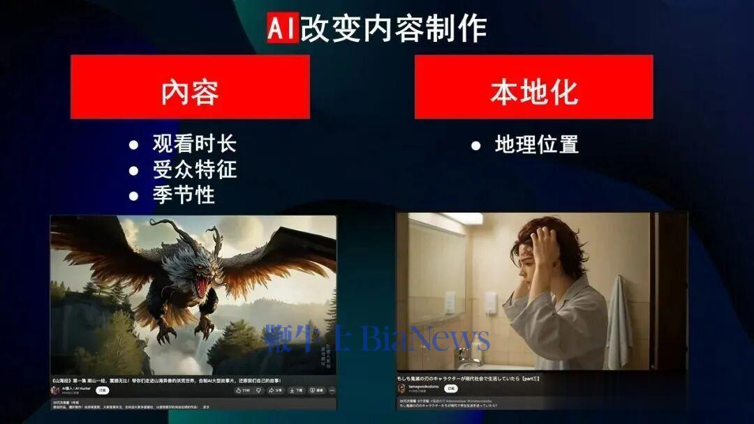 其次是本地化,它有内容特性。这里截图的是最近上演的《鬼灭之刃》,如果一个普通人一天的生活是怎样?过去我们要找像类似的演员、搭建类似的场景,但是在AI,大家在家里分分钟就可以完成,好处就是我们可以专注在高收入国家的内容,赚取YouTube上更多广告分润,AI给我们带来了巨大的想象空间,相信大家都在关注这件事。