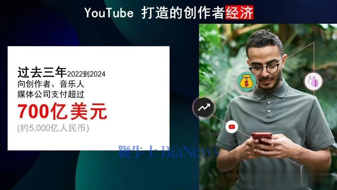 讲了短剧的表现,刚才我们的收益增加了2倍,YouTube到底如何支持所有创作者、媒体公司和音乐公司呢?这里有一个公开的数字,2022-2024年我们向创作者、音乐人以及媒体公司支付了几千亿人民币,因为我们是上市公司,可以看Google的财报,2025年增长确实比2024年更快。