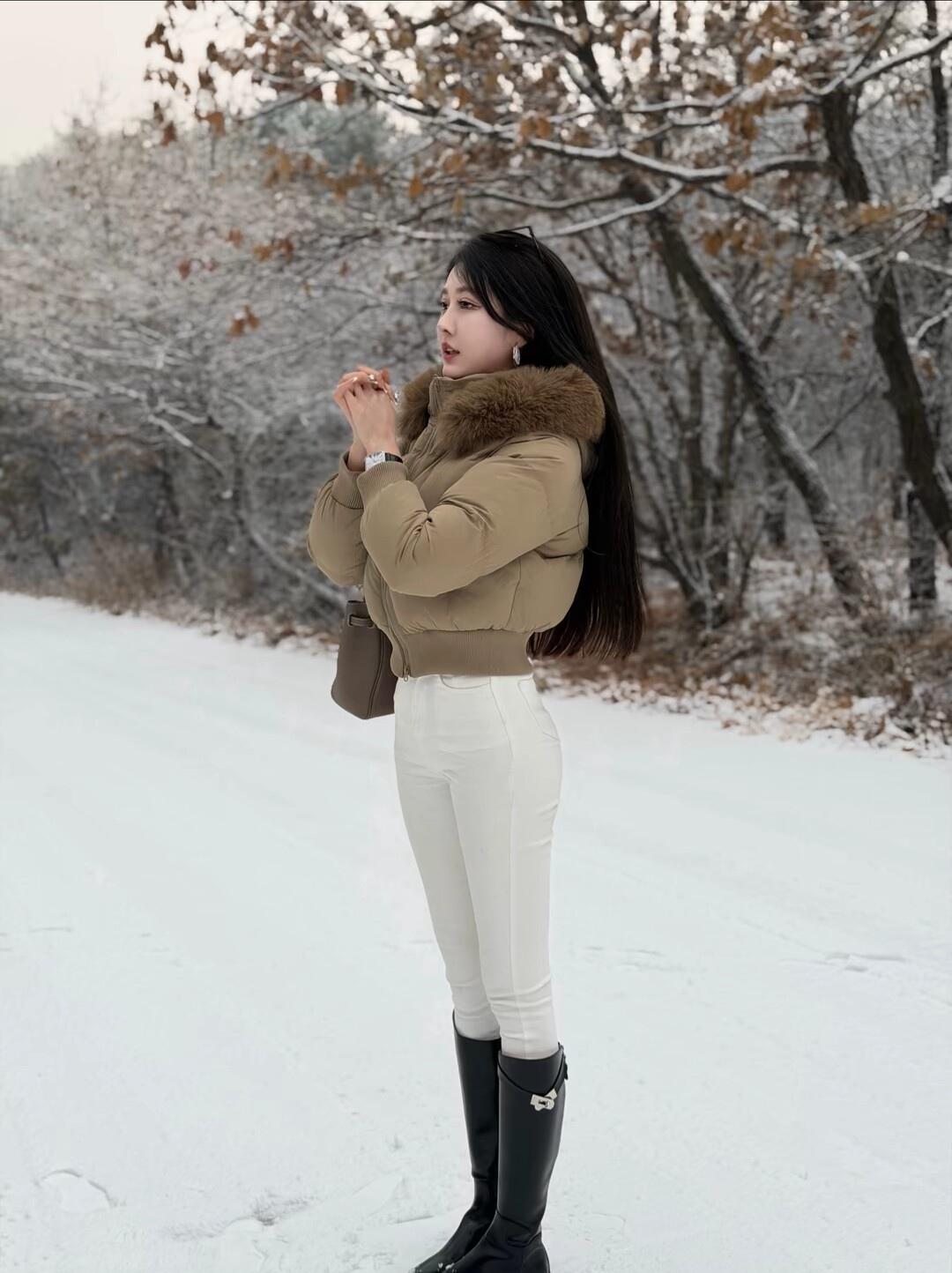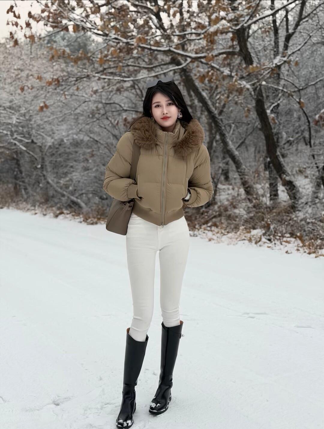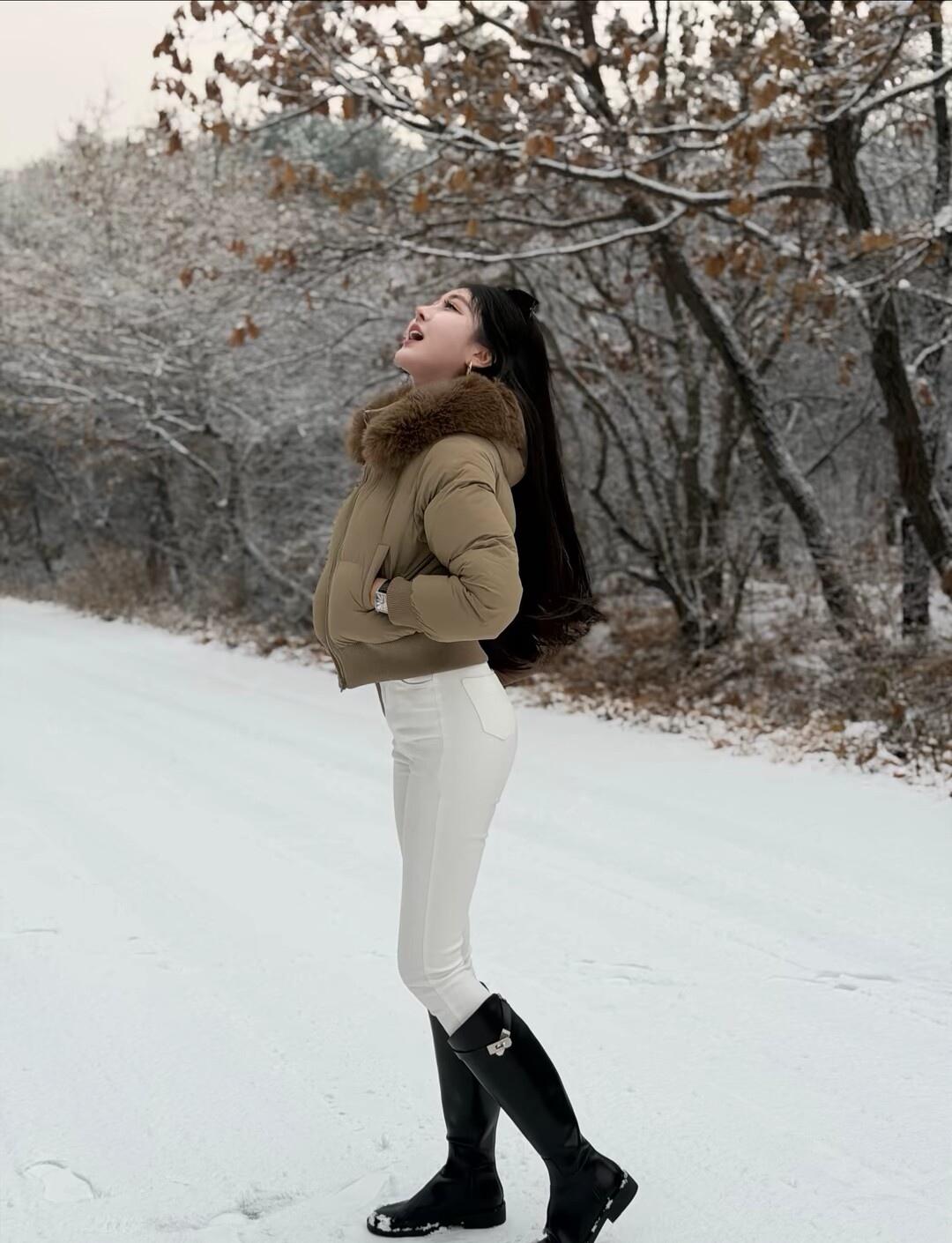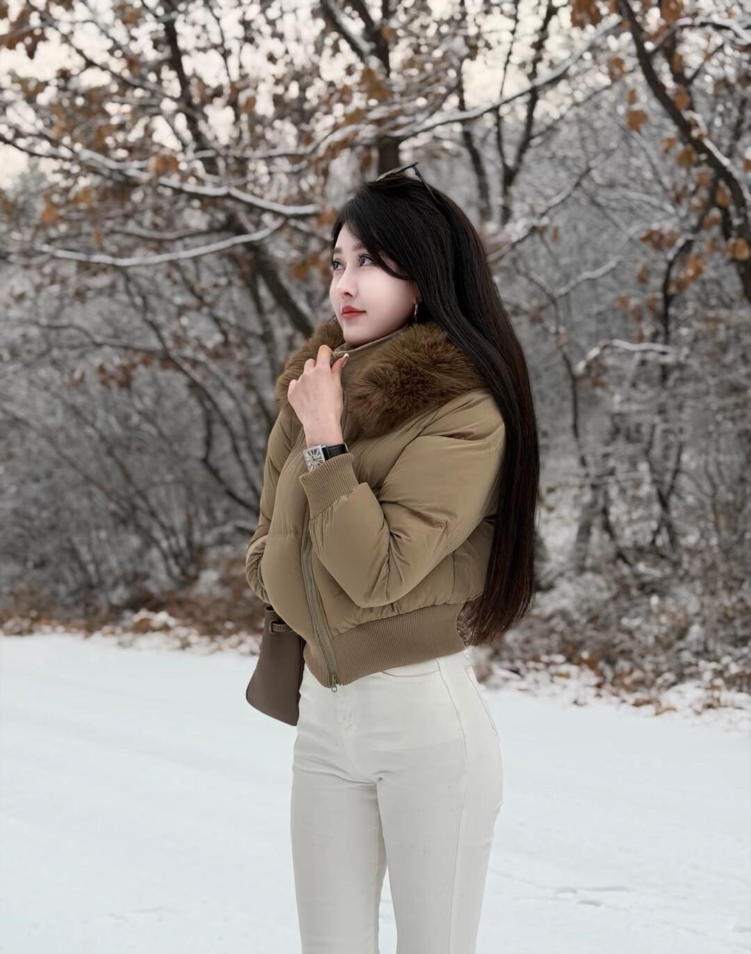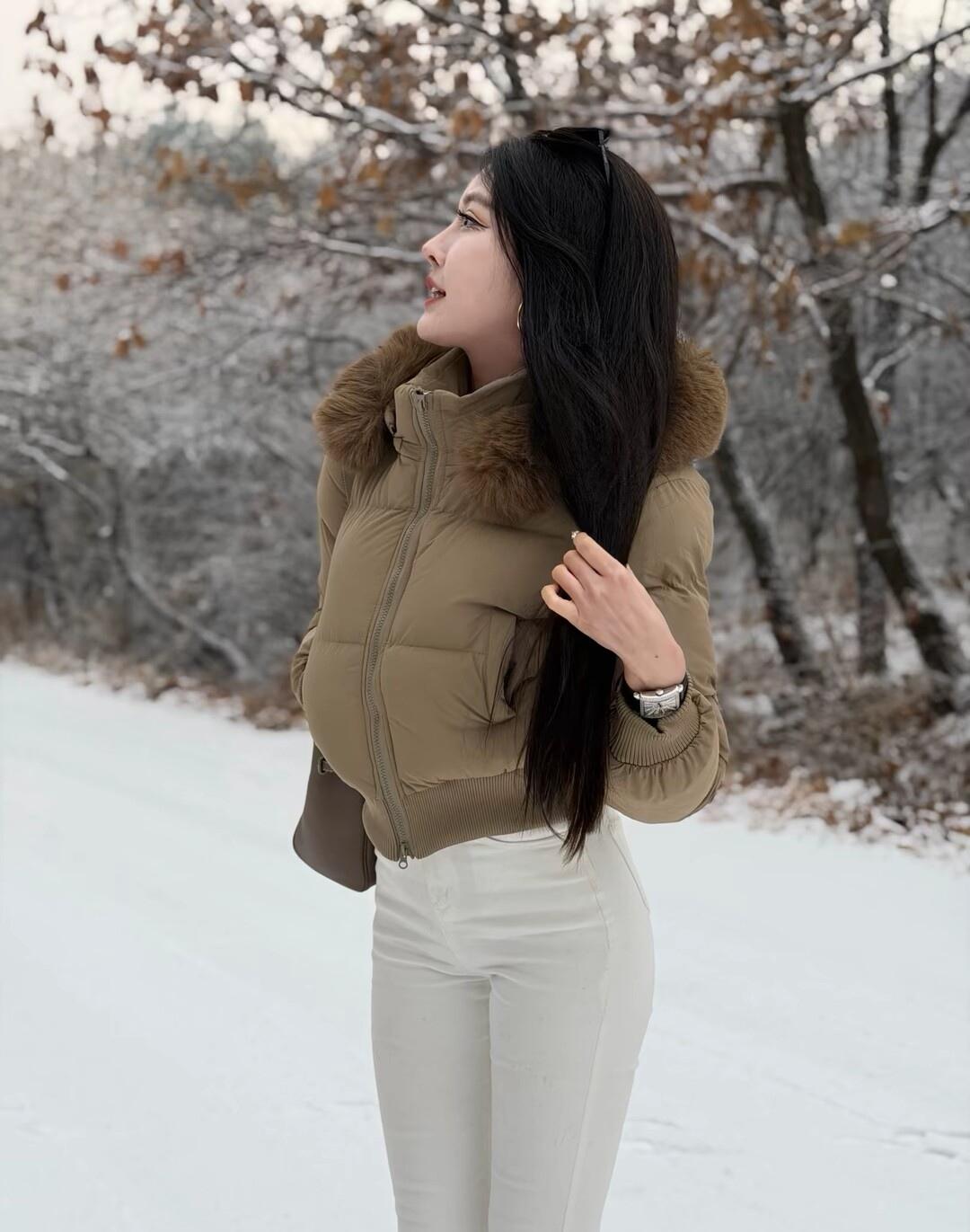 冬日暖阳下,时尚御姐的雪地漫步