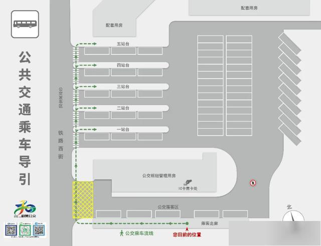 换乘乘客下车后北行绕过办公楼到达公交发车区,根据乘坐线路前往相应车道进行换乘。