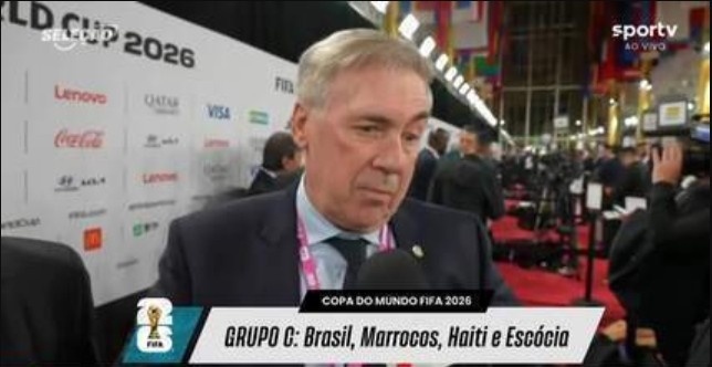 直播吧12月6日讯2026年世界杯分组抽签结果出炉,巴西与摩洛哥、海地、苏格兰同分在C组。抽签仪式结束后,巴西主帅安切洛蒂接受sportv采访,谈到了球队的备战安排。