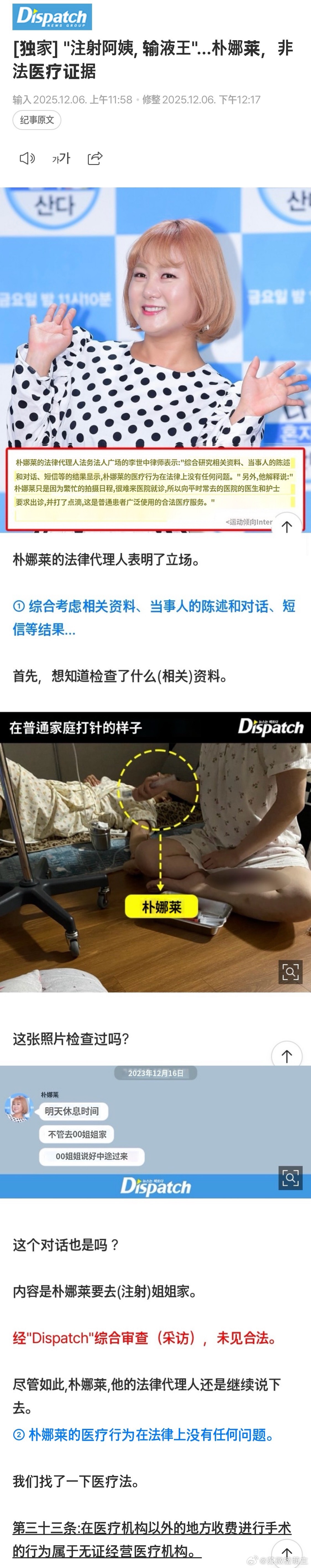 年末了D社开始疯狂发力【热帖】[独家] 注射阿姨点滴王…朴娜莱非法医疗证据曝光评论一个小时1200+