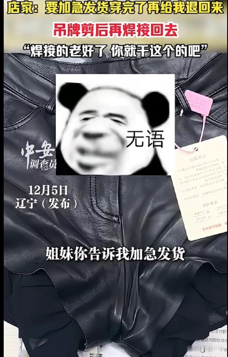 有谁像我一样,网购衣服鞋帽货到了赶紧取,取了赶紧试穿,不合适赶紧退,生怕影响商家二次销售的? 刚刚看到了辽宁一开网店的大姐吐槽,一个女顾客从她家买了一条皮短裤,结果把裤子穿到严重变形、两条裤子全是死褶子,都无法回弹了,把挂牌剪掉又粘上后,还给她退了回来。 大姐收到商品后差点儿没气疯,在网上怒斥这个女顾客肯定就是专门干这个的。 看完这个视频,我就联想到了自己。 因为没有钱,平时很少买衣服和鞋子,实在没得穿从网上买两件便宜的。收到货后赶紧去快递点取来,回家拆开就试穿,更是不敢动吊牌儿,在屋里走两圈就立马脱下来。 如果差不多就留下,如果实在不舒服就赶紧申请退货退款,衣服都给人按来时样子叠好装进去,鞋子穿完底还得用抹布擦干净。生怕脏一点儿或晚一点儿老板不给退,更怕影响老板二次销售。 头几年早就听说有这样网上白嫖的行为,也看过同事这么干过。白嫖的事儿我真学不来,宁可自己穷得穿破破烂烂,也不愿意在网上做这事儿坑人。