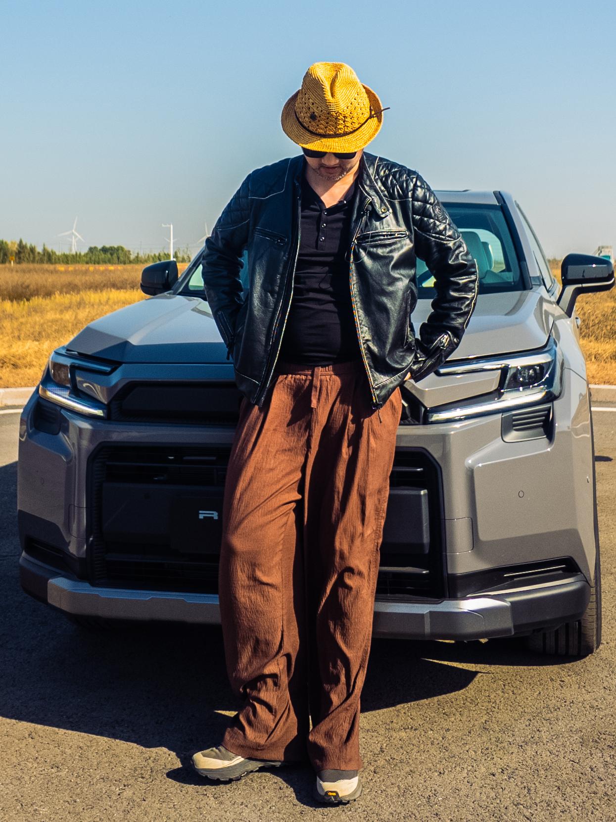 在盐城中汽中心试验场拍摄RAV4荣放,现在来到第六代,外观更加硬朗,新增了2.0L双擎发动机,WLTC综合油耗4.59L。 以上不是重点,这次主要分享拍摄封面的穿搭心得。在冬天,外套一直都是选择皮衣,这款是牛皮材料,上身穿是有些重量的,肩部衬有菱形花纹,视觉效果还不错。搭配咖啡色宽松休闲长裤,整套看着很有质感。 拉菲草帽现在是作为个人标志了,一开始是为了遮盖白头发,后来有人说戴着很有特点,就这样一直戴着了。【来自懂车帝车友圈】