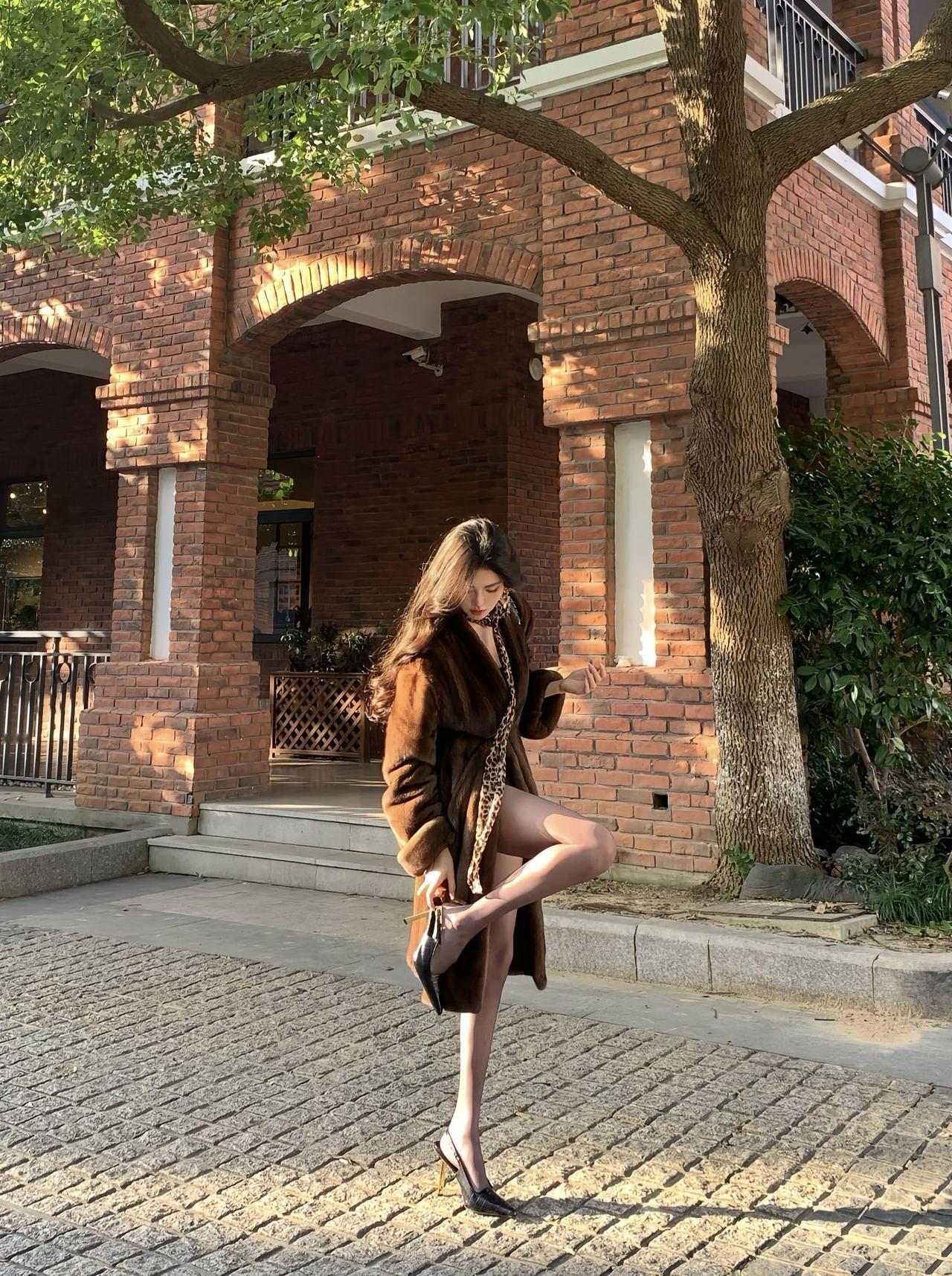 秋日街头的“贵气御姐”:一件皮草大衣,穿出不费力的高级感 秋日午后的红砖老建筑旁,焦糖棕皮草大衣裹着纤秾有致的身段,黑丝衬得腿型愈发修长,黑金链条包轻轻搭在臂弯——这一幕,活脱脱是都市御姐的秋日时尚范本。 不刻意扮嫩,也不堆砌华丽,她把“松弛感贵气”拿捏得刚好:皮草的软糯中和了黑丝的冷艳,豹纹丝巾添了几分野性,红唇微扬的神态里,是阅尽千帆后的从容。 都说秋日穿搭难平衡温度与风度,可她偏用一件长款皮草,裹住了凉意,也裹出了“姐就是豪门”的气场。阳光落在砖墙上的光斑,都成了她的背景板——原来真正的御姐风,从不是用力过猛的张扬,而是骨子里自带的松弛与贵气。
