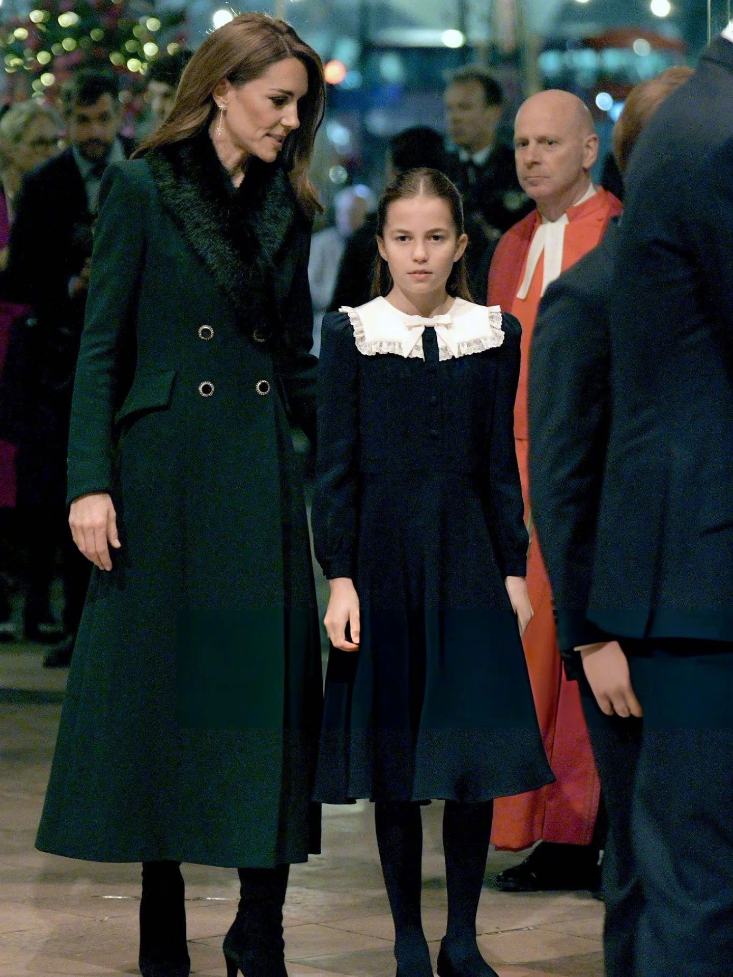 当地时间12月5日,🎄 凯特王妃携全家亮相威斯敏斯特教堂,参加她主持并录制了她的第五场 “圣诞同聚” 颂歌庆典。才10岁的夏洛特小公主真是超越年纪的优雅大气加沉稳,越长越好看了。夫妇俩好爱这个女儿。满七岁的路易小王子终于穿上了长裤,乔治帅气依旧。凯特身穿Catherine Walker 定制的绿色大衣,前几年就穿过,这次加了一个Troy London 仿皮草领饰。👗 格纹半裙出自Miu Miu ,脚穿👢Ralph Lauren 高跟靴,佩戴💎Robinson Pelham 钻石耳环。米拉服饰解析